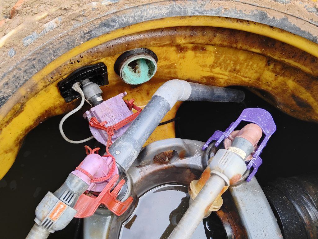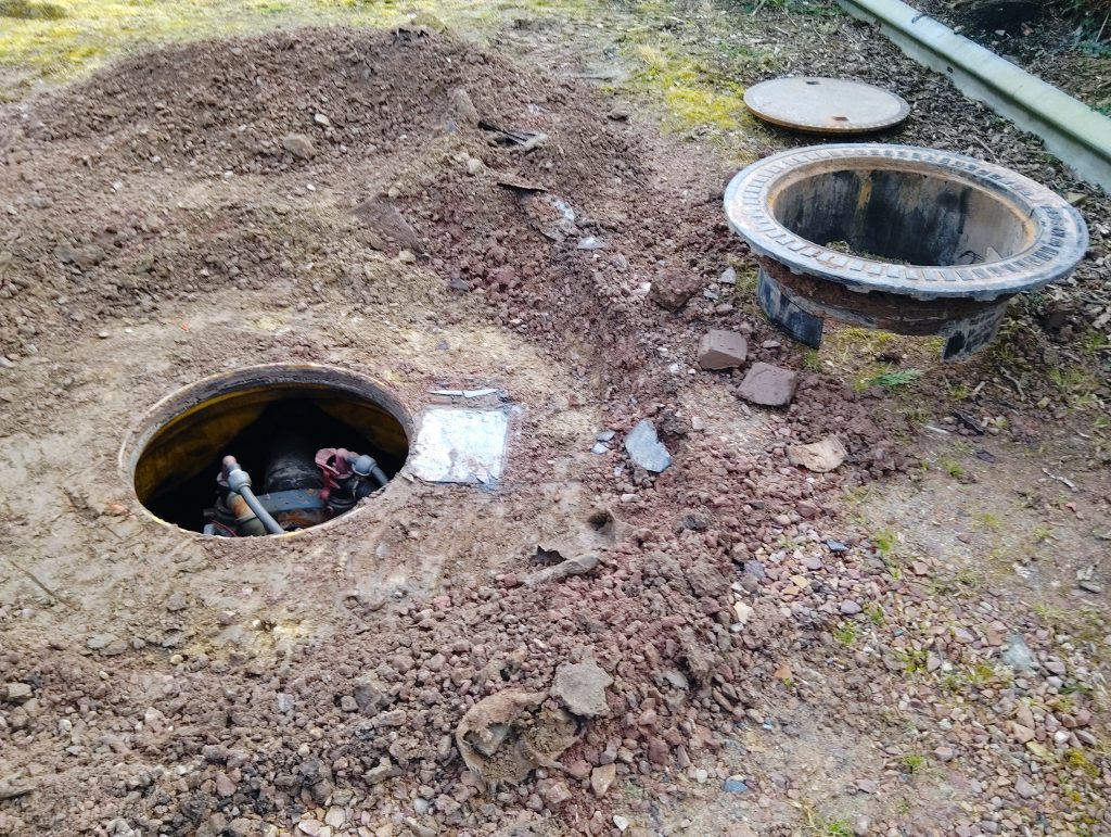La conduite D50 flexible du transfert d’alimentation est aussi cassée. Nous procédons à sa réfection en PVC pression D50.