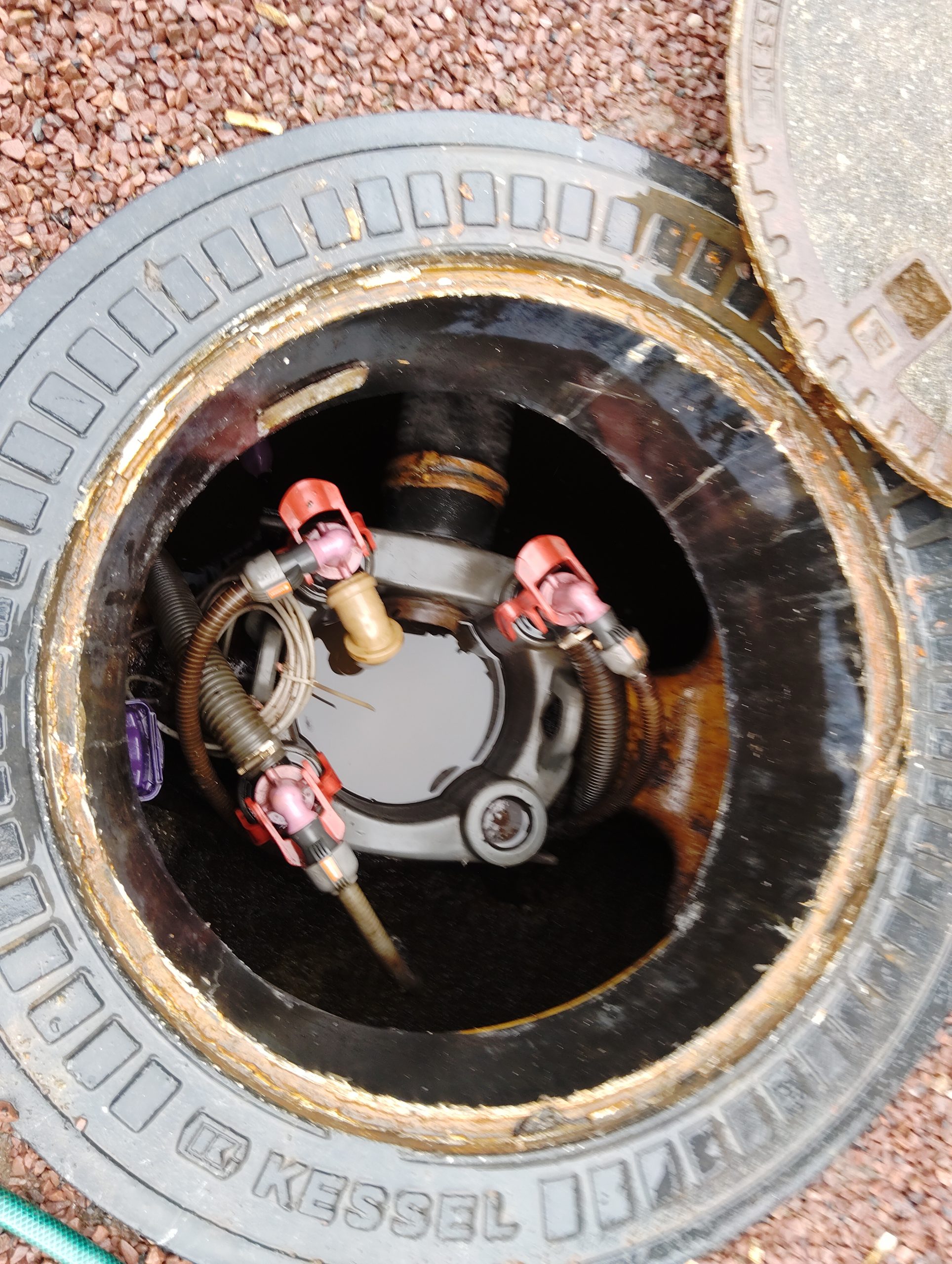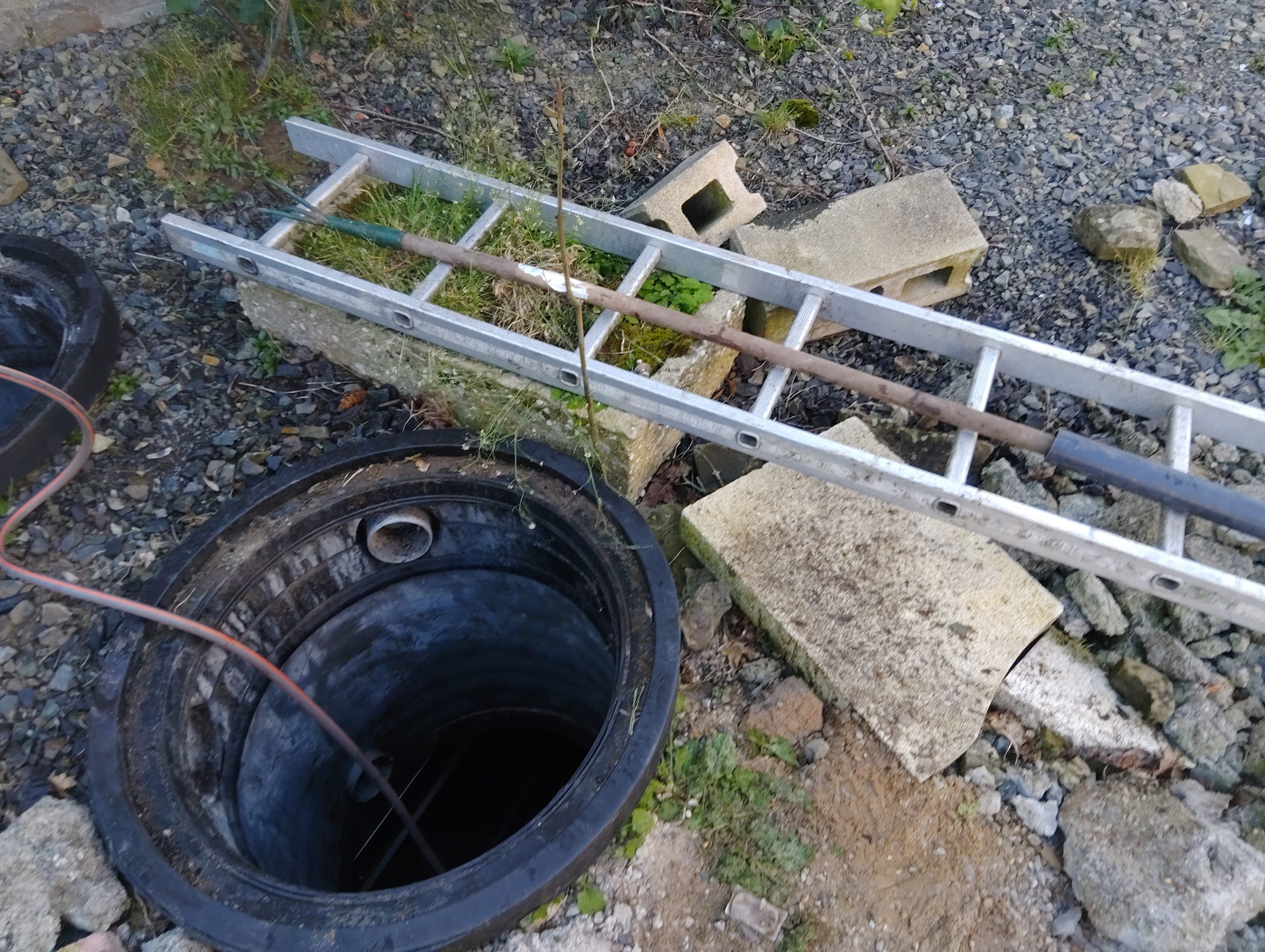 La conduite D50 flexible du transfert d’alimentation est aussi cassée. Nous procédons à sa réfection en PVC pression D50.