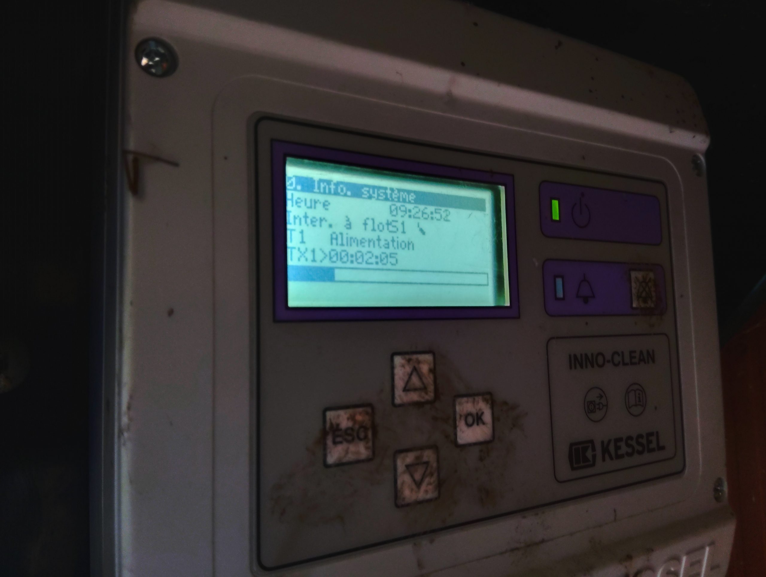 Le support du bloc électrovannes est cassé et ne peut être réparé. Toutefois, même si ce bloc est suspendu et attaché dans la cuve, cela ne compromet pas le bon fonctionnement de cette micro-station Kessel Innoclean.