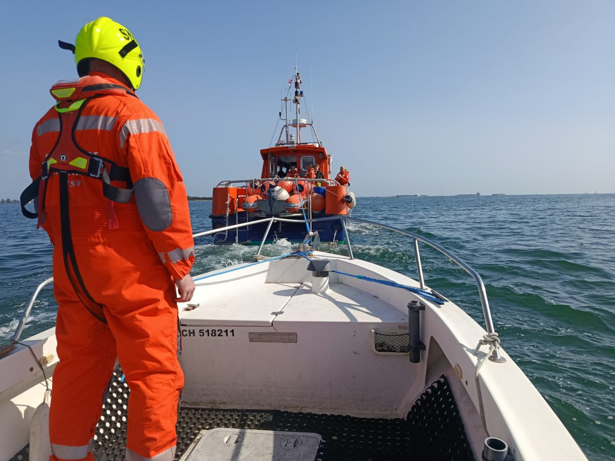 Dimanche 10 août, un exercice de sauvetage a eu lieu au large, entre Quinéville et la Hougue, en compagnie de la SARL AQUAsoluces.