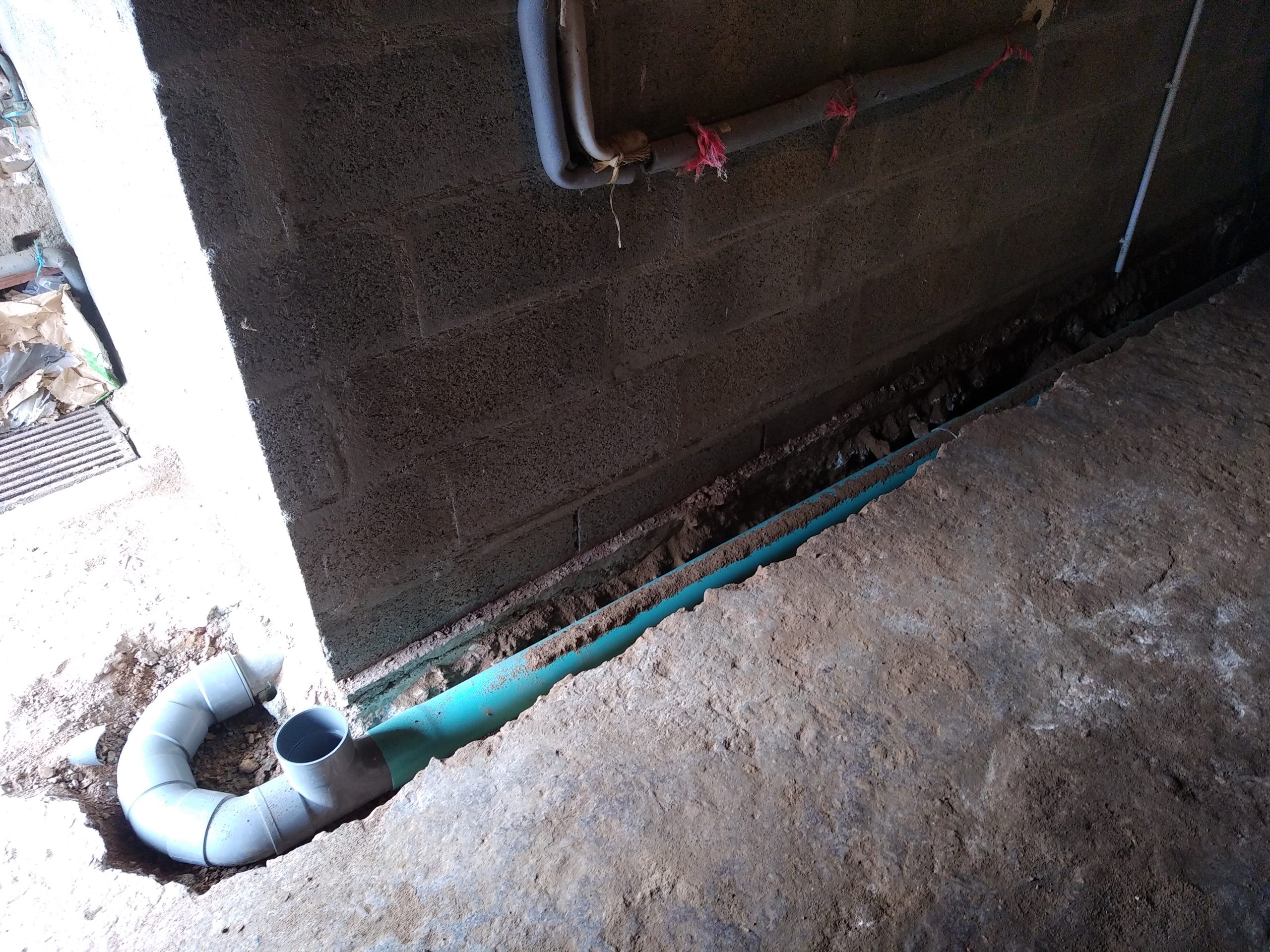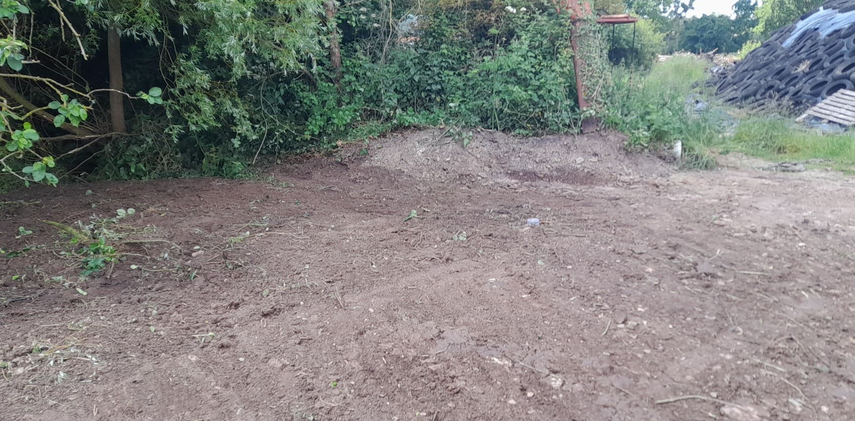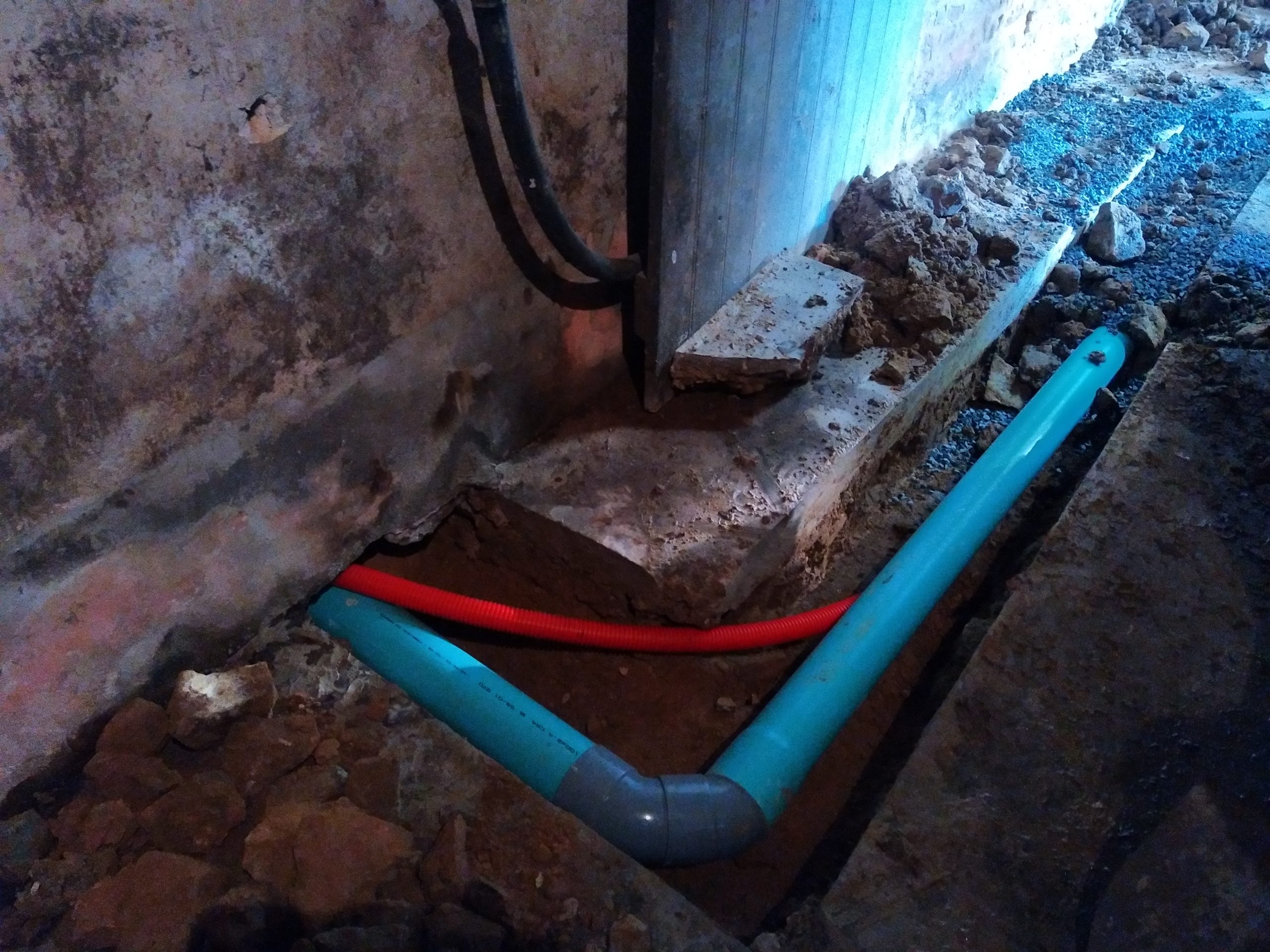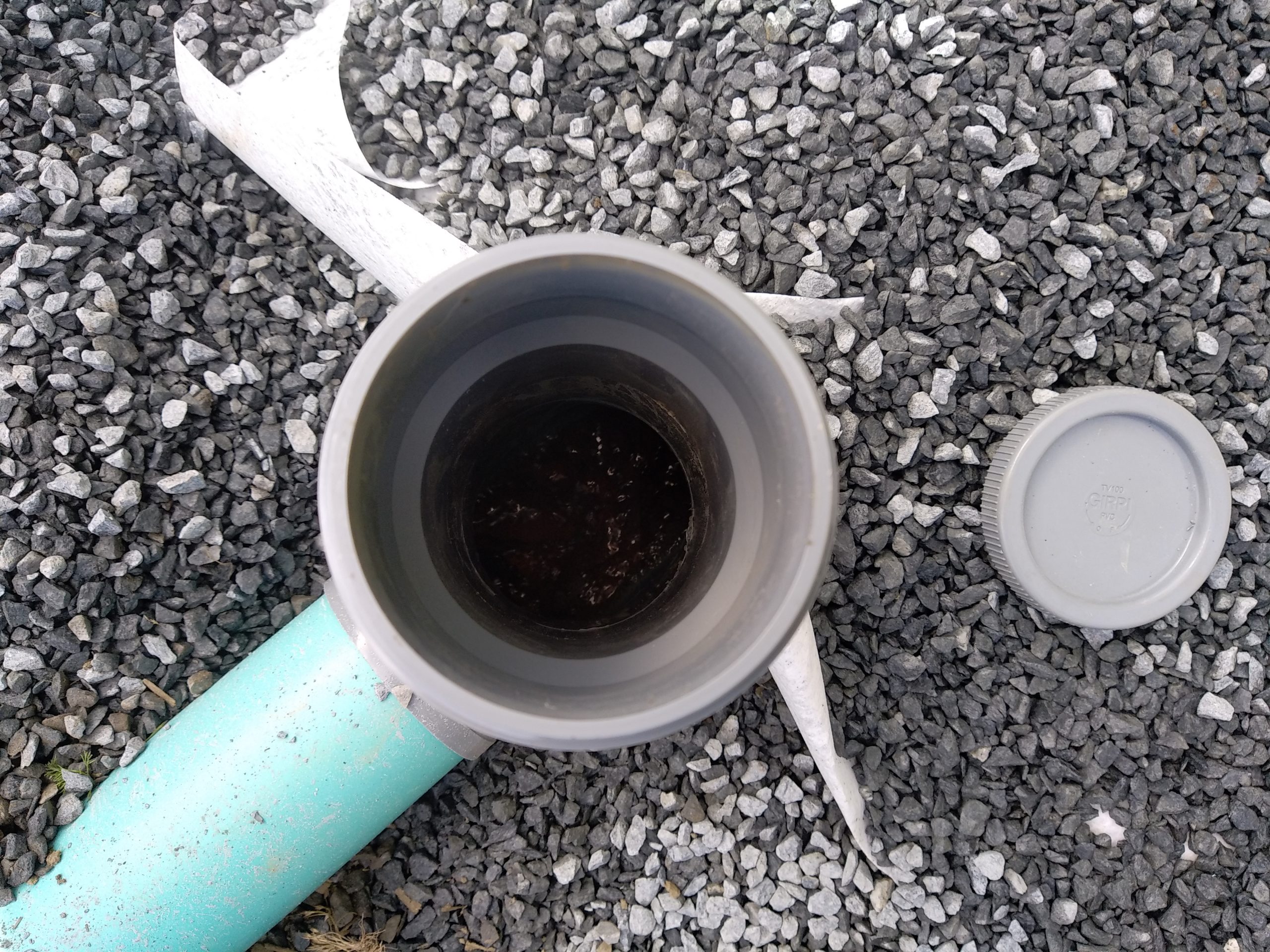 Avec un sol argileux, lourd et hydromorphe à très faible profondeur, les cuves sont posées sur un lit de béton et remblayées latéralement avec du béton dosé à 250 Kg de ciment par m3. La finition en surface est réalisée avec du gravier 6-10 mm.