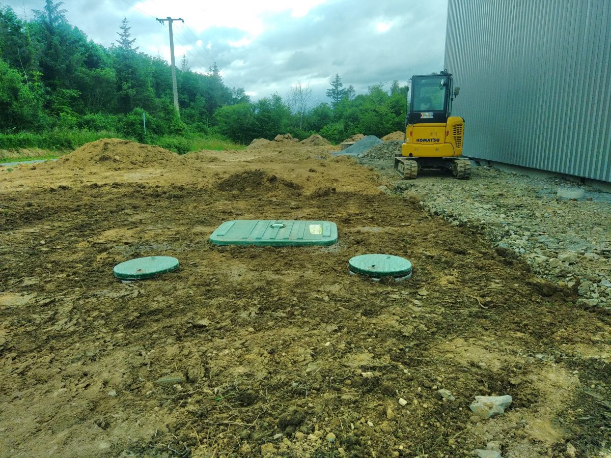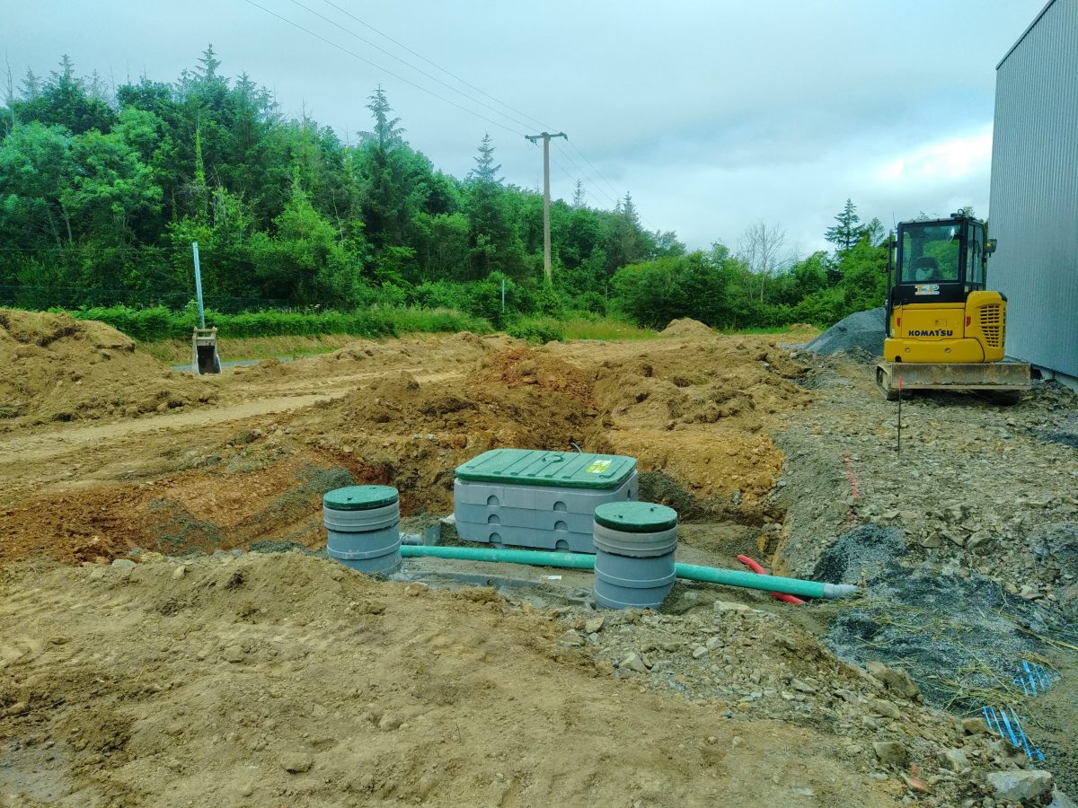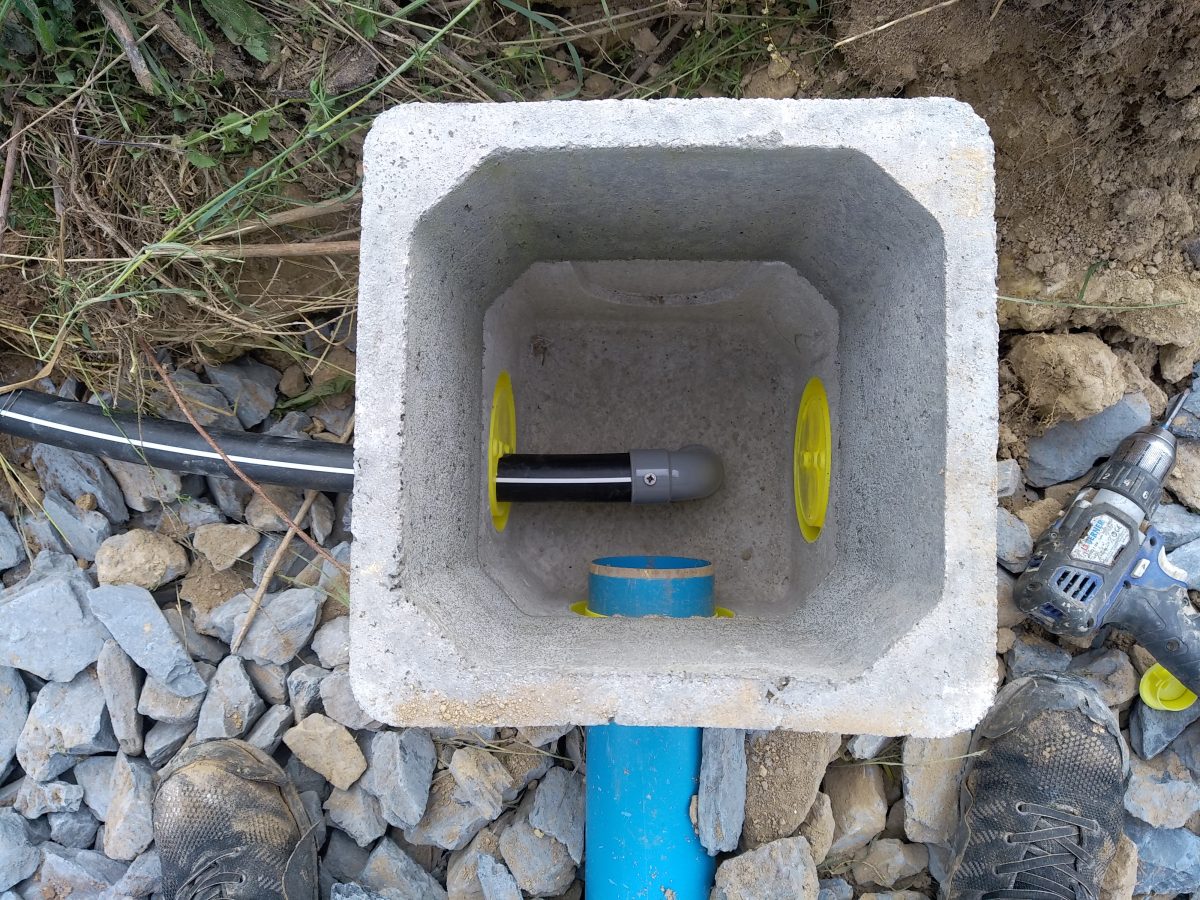 La parcelle est relativement spacieuse mais en quasi totalité empierrée. La filière retenue est alors un filtre compact ECOFLO PE2 5 EH Sortie Haute, fabriqué par Premier Tech Aqua.