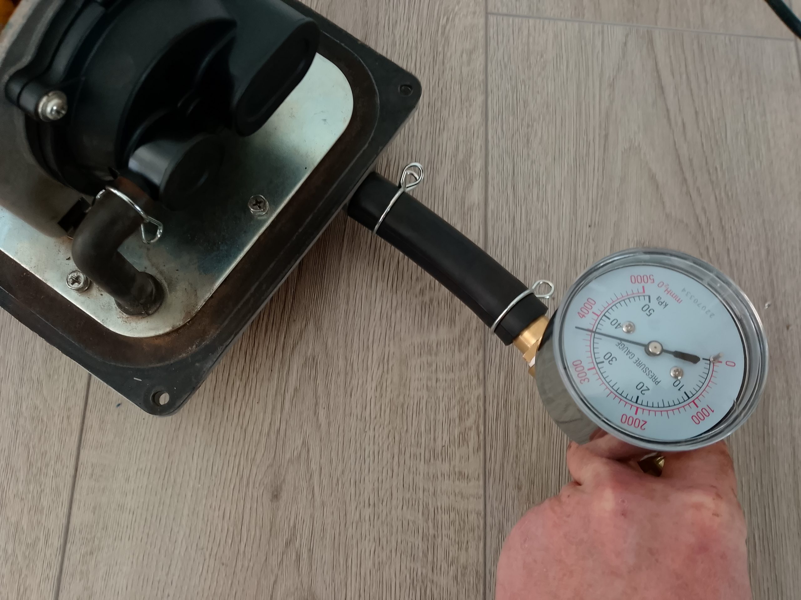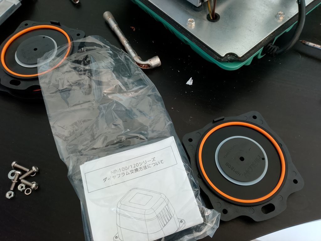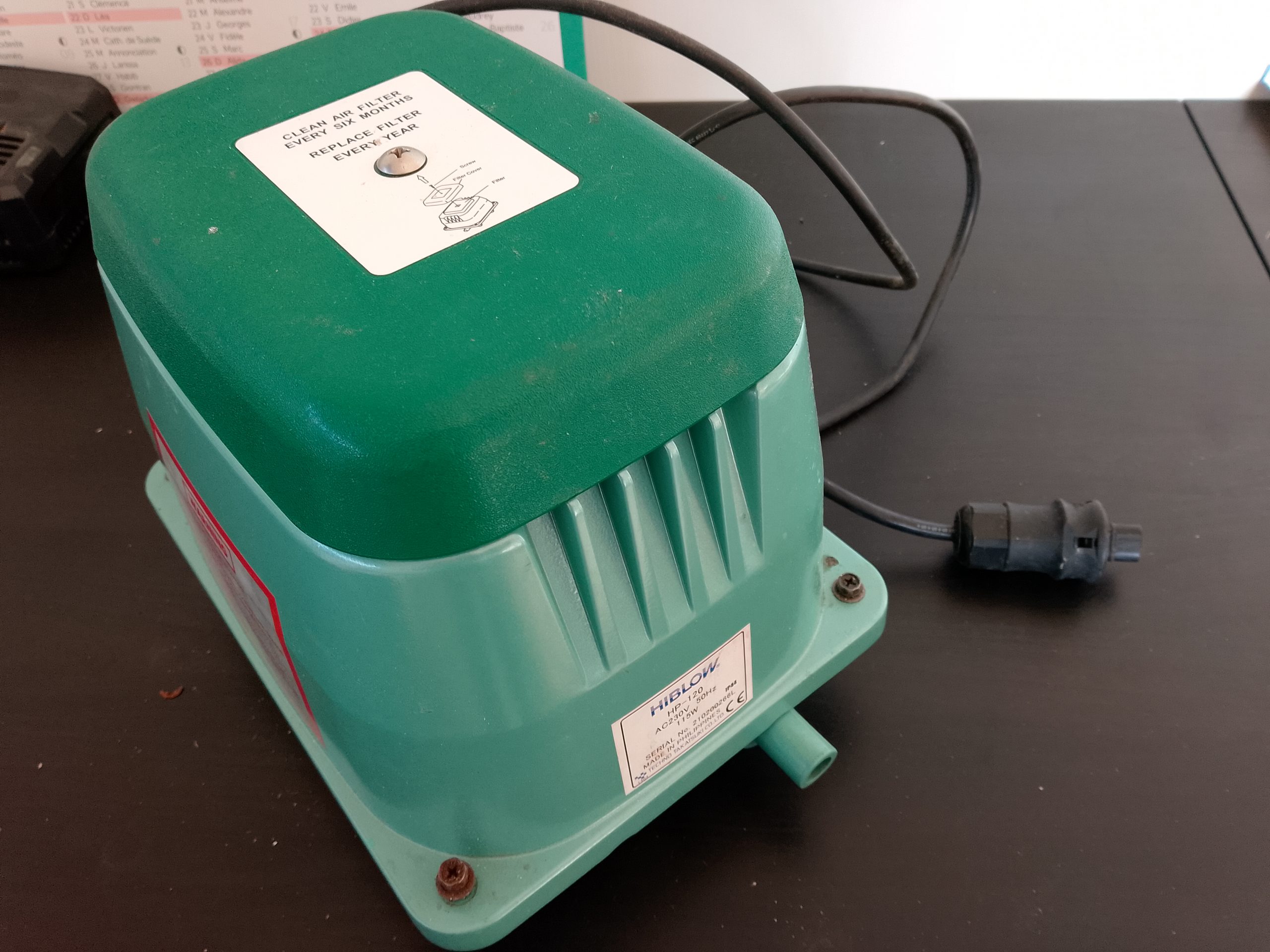 Nous procédons au changement des membranes, du filtre à air et nous remplaçons le micro-contacteur défectueux. Après 45 minutes et remontage, nous procédons à des tests de fonctionnement et à une mesure de pression. Tout est OK, ce compresseur Hiblow HP-120 est réexpédié à son propriétaire après règlement de cette prestation technique.