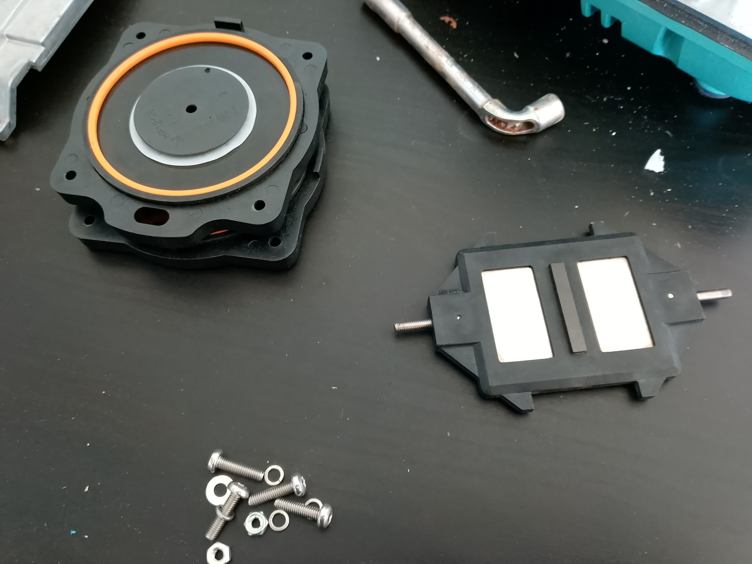 Nous recevons aujourd’hui, en notre atelier, deux compresseurs à membranes de micro-station d’épuration à réparer.