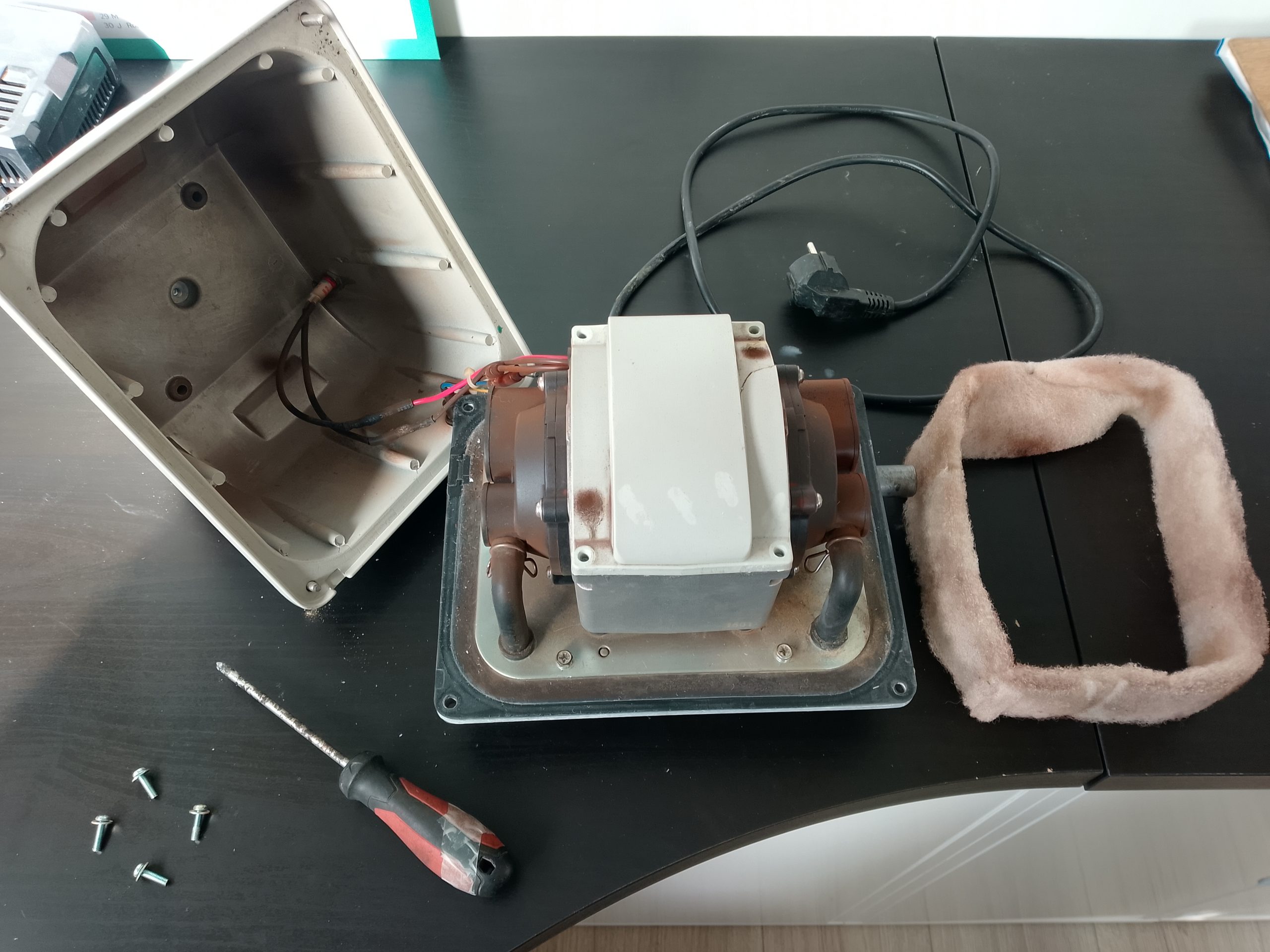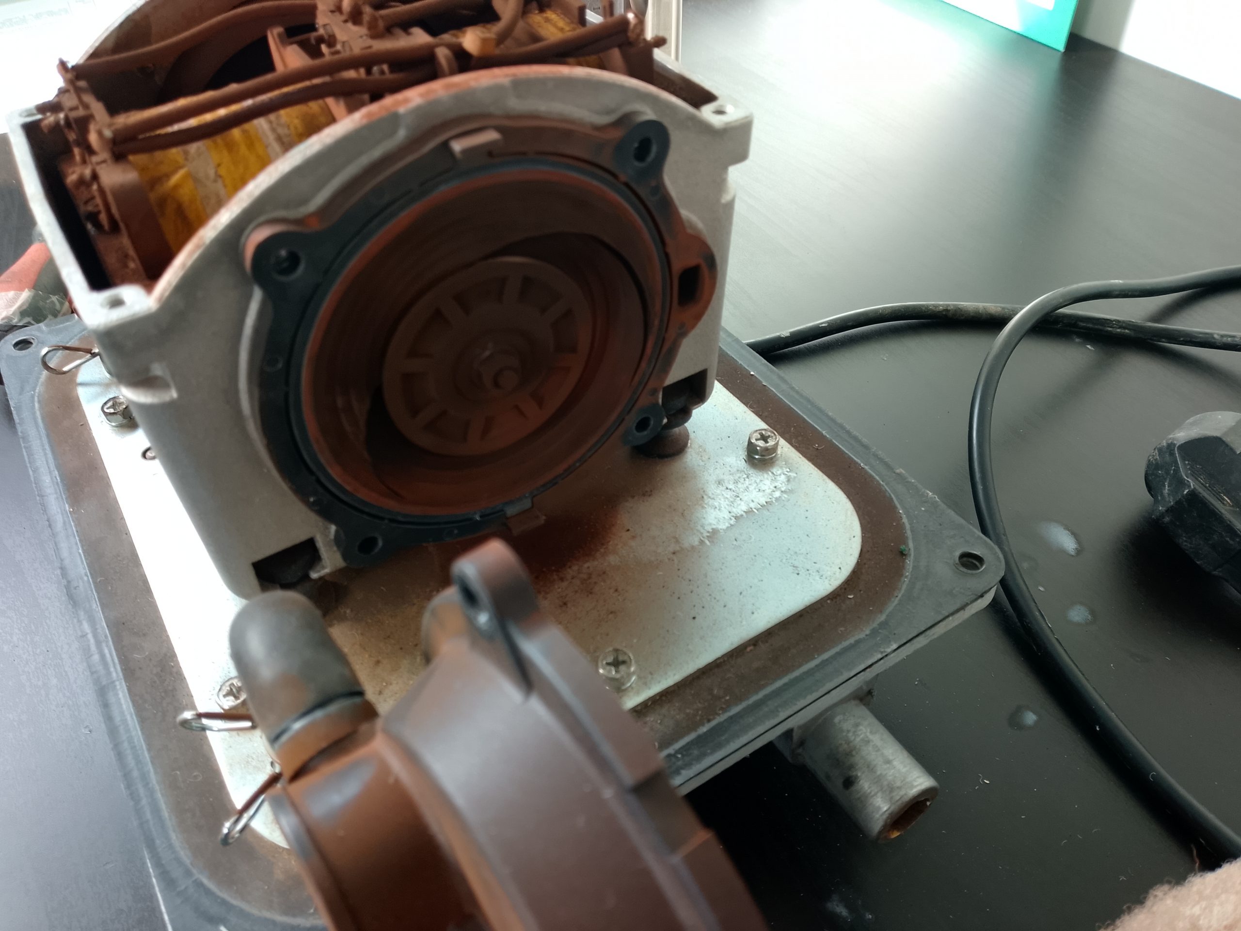Après ouverture de ce compresseur, nous sommes assez sceptique quant à sa réparation. En effet, nous notons la présence, en abondance, de poussière rouille qui n’est habituellement pas un bon signe. De plus, l’arbre aimant est collé. Après nettoyage, nous changeons les membranes, les chambres à clapet et le filtre à air. Nous recentrons bien l’arbre aimant et le micro-contacteur de sécurité. Après une heure de travail minutieux, ce compresseur SECOH EL-S-60 est de nouveau opérationnel. Son propriétaire passera le retirer après règlement de cette prestation technique.