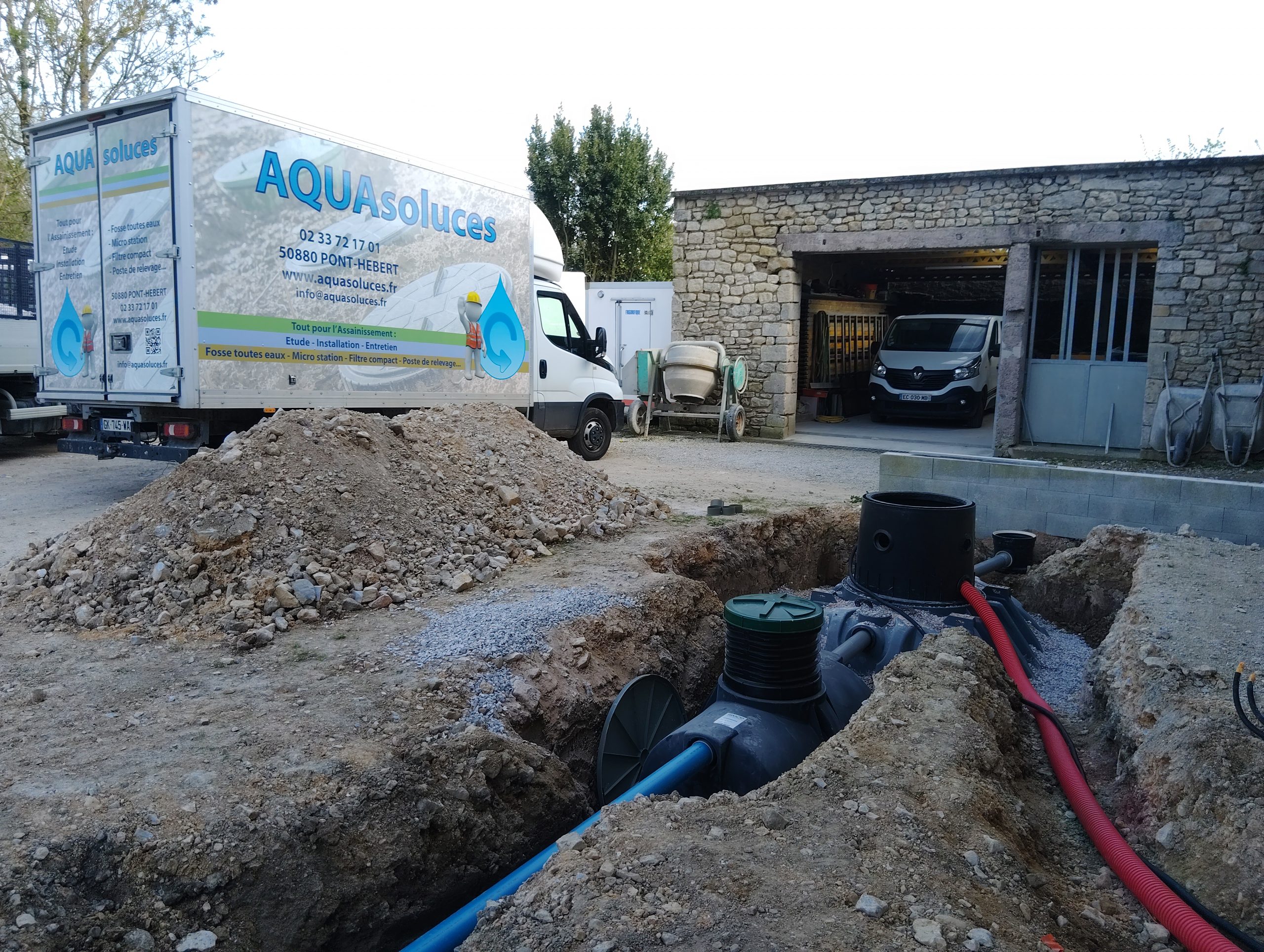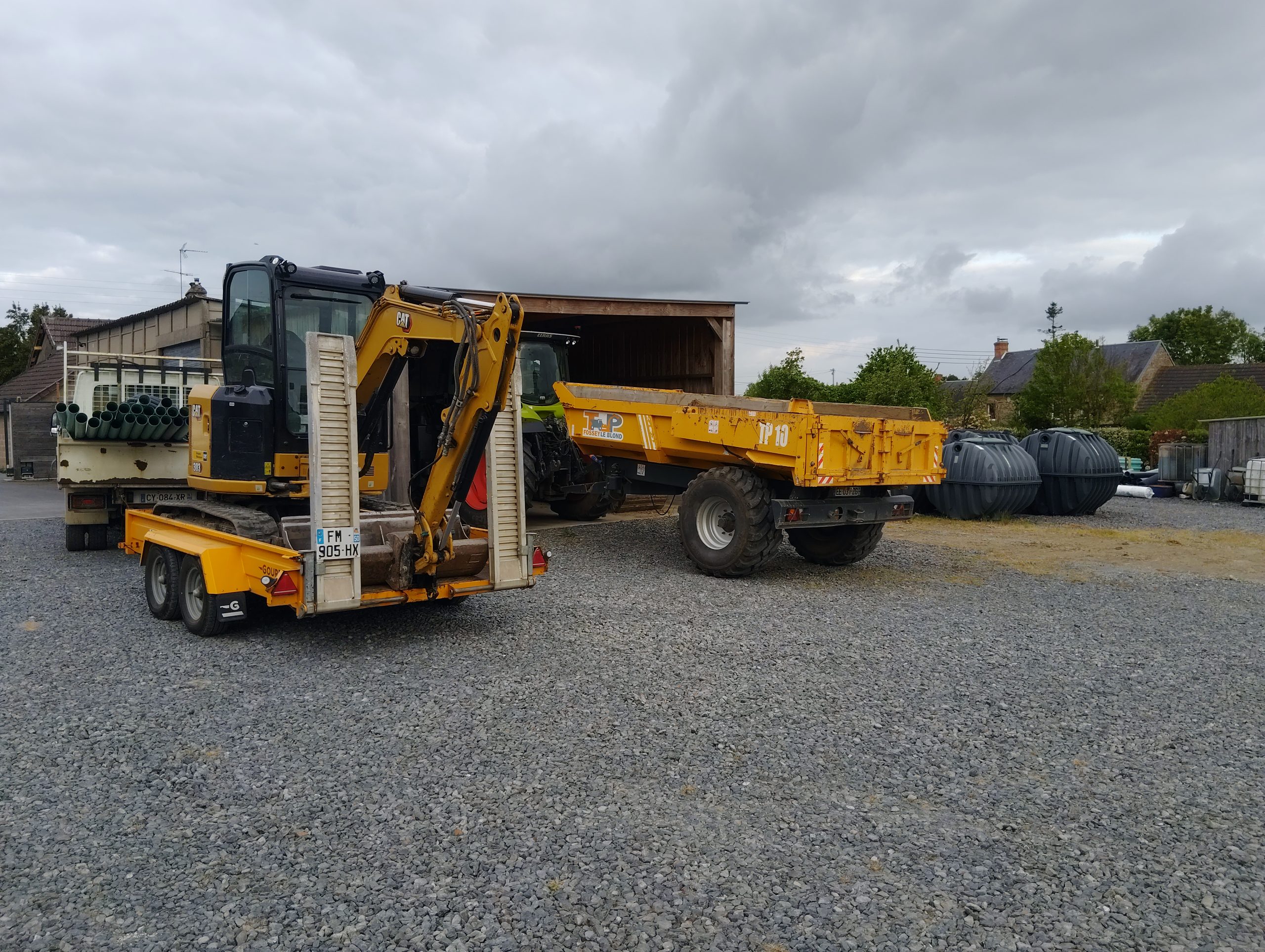 Un nouveau chantier de mise en conformité d’un Assainissement Non Collectif à Giéville ( 50160 ), dans La Manche ( 50 ), en Normandie, avec notre partenaire terrassier Erick HAMOND.