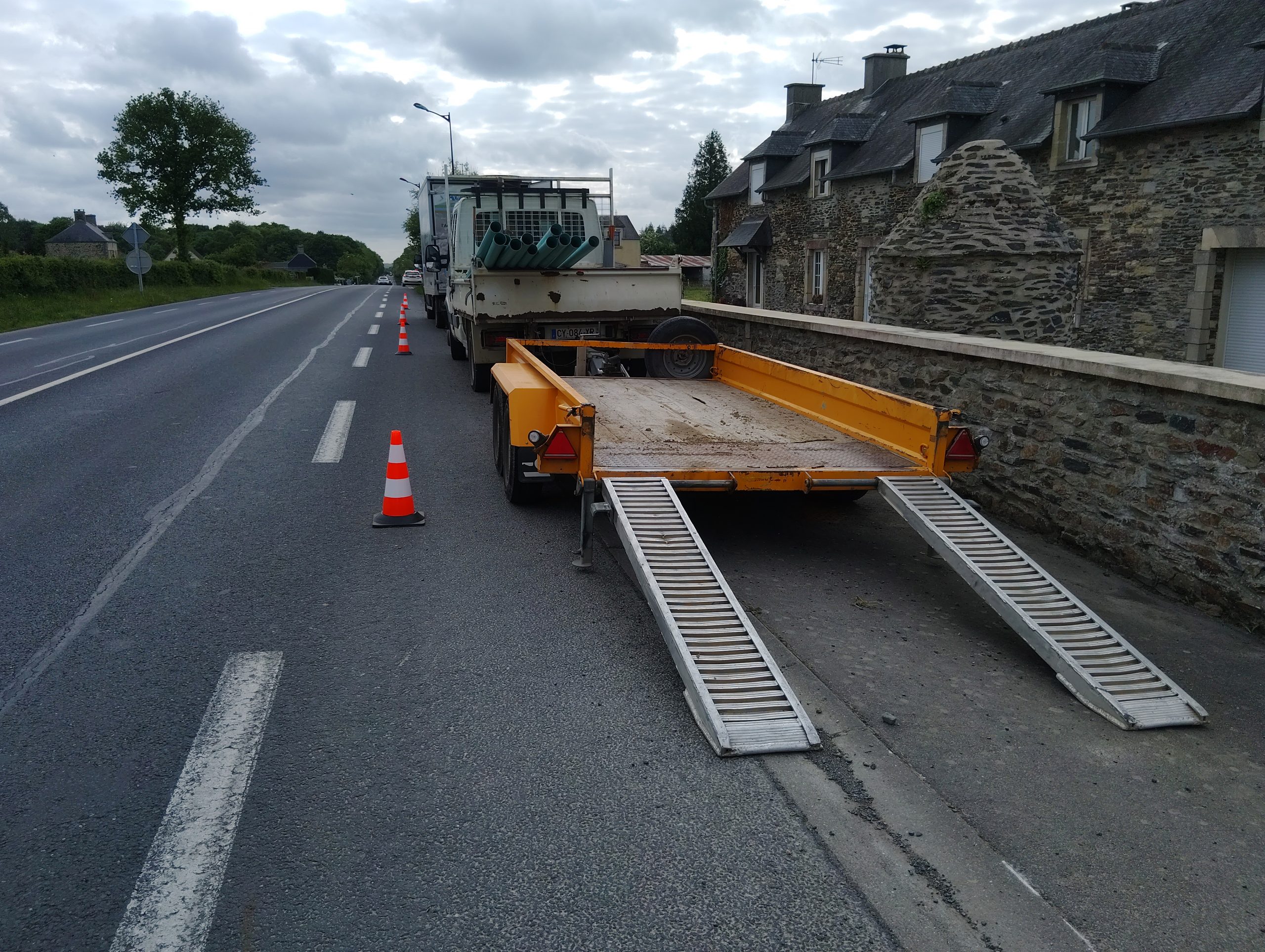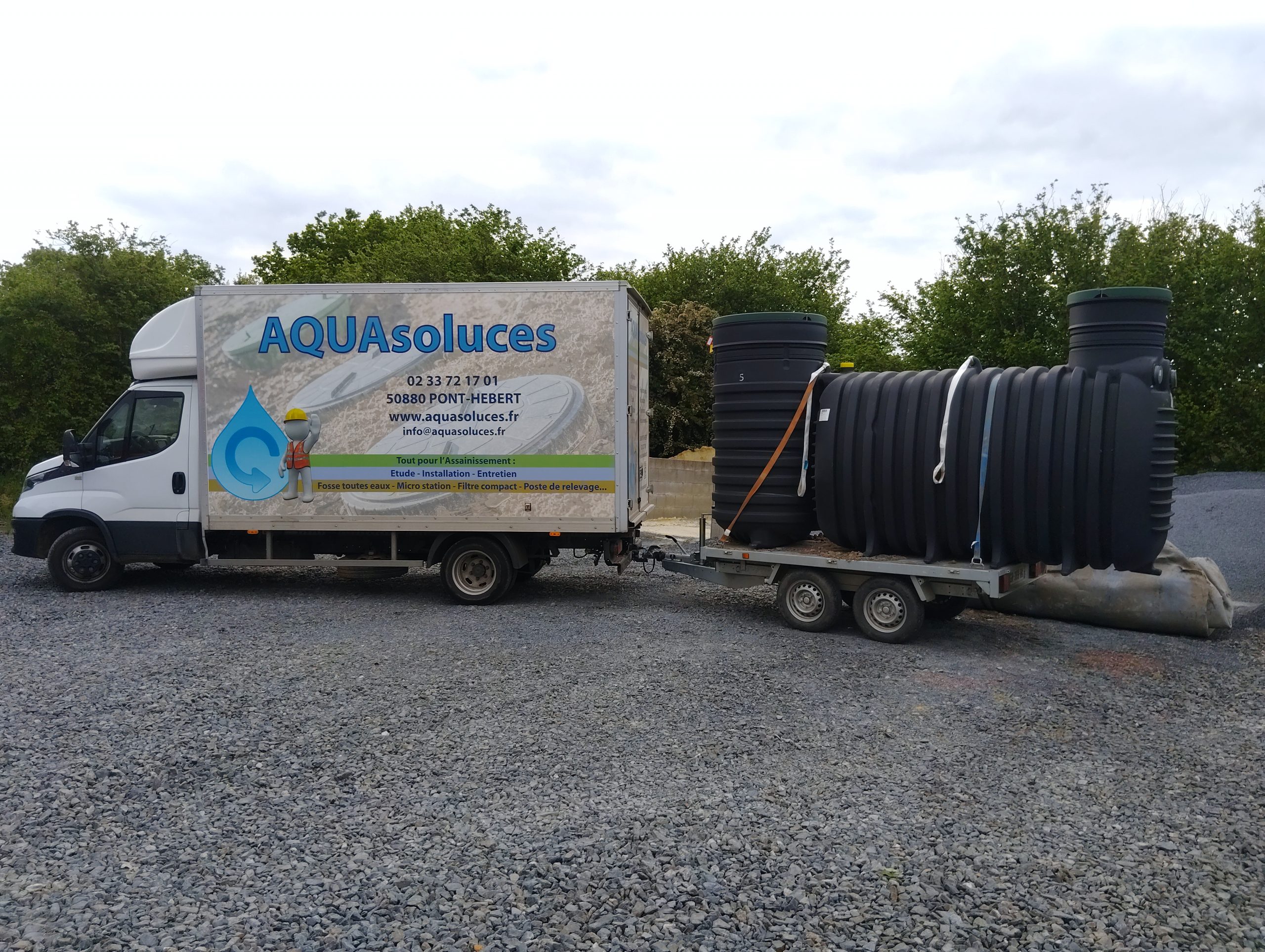 Départ 8h00 du dépôt de notre partenaire terrassier installateur et spécialisé en ANC, Fossey Le Blond TP, basé à Saint-Georges-Montcocq ( 50000 ), dans La Manche, en Normandie.