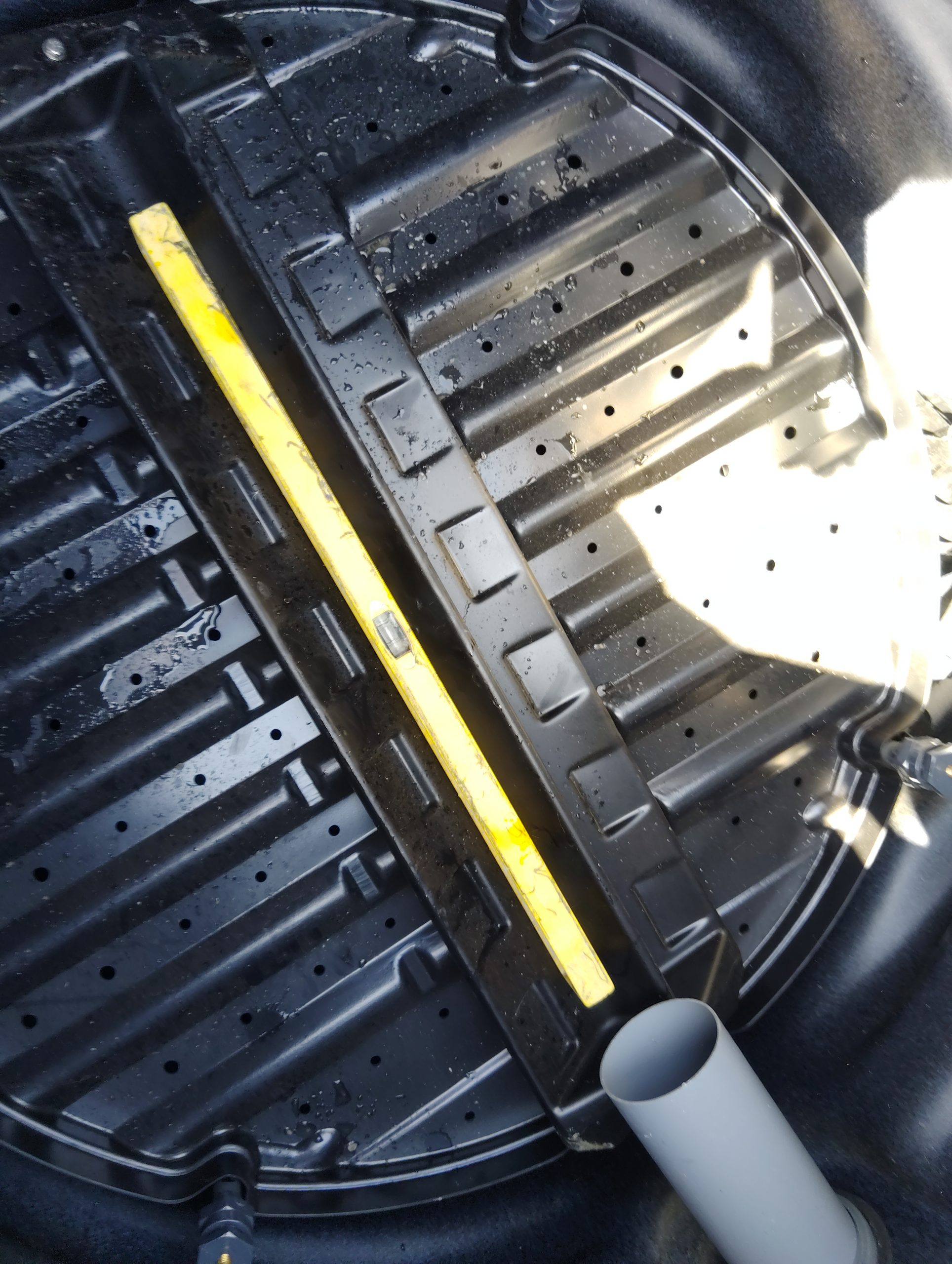 Avec un sol argileux, compact, et fortement hydromorphe, un ancrage béton et un remblaiement latéral en béton s’impose. Pas de blague ! Quelques 4.5 m3 de béton, dosés à 250 Kg de ciment / m3, seront employés, soit plus de 10 tonnes de lestage. Dans 48 heures, la cuve ne pourra plus bouger !