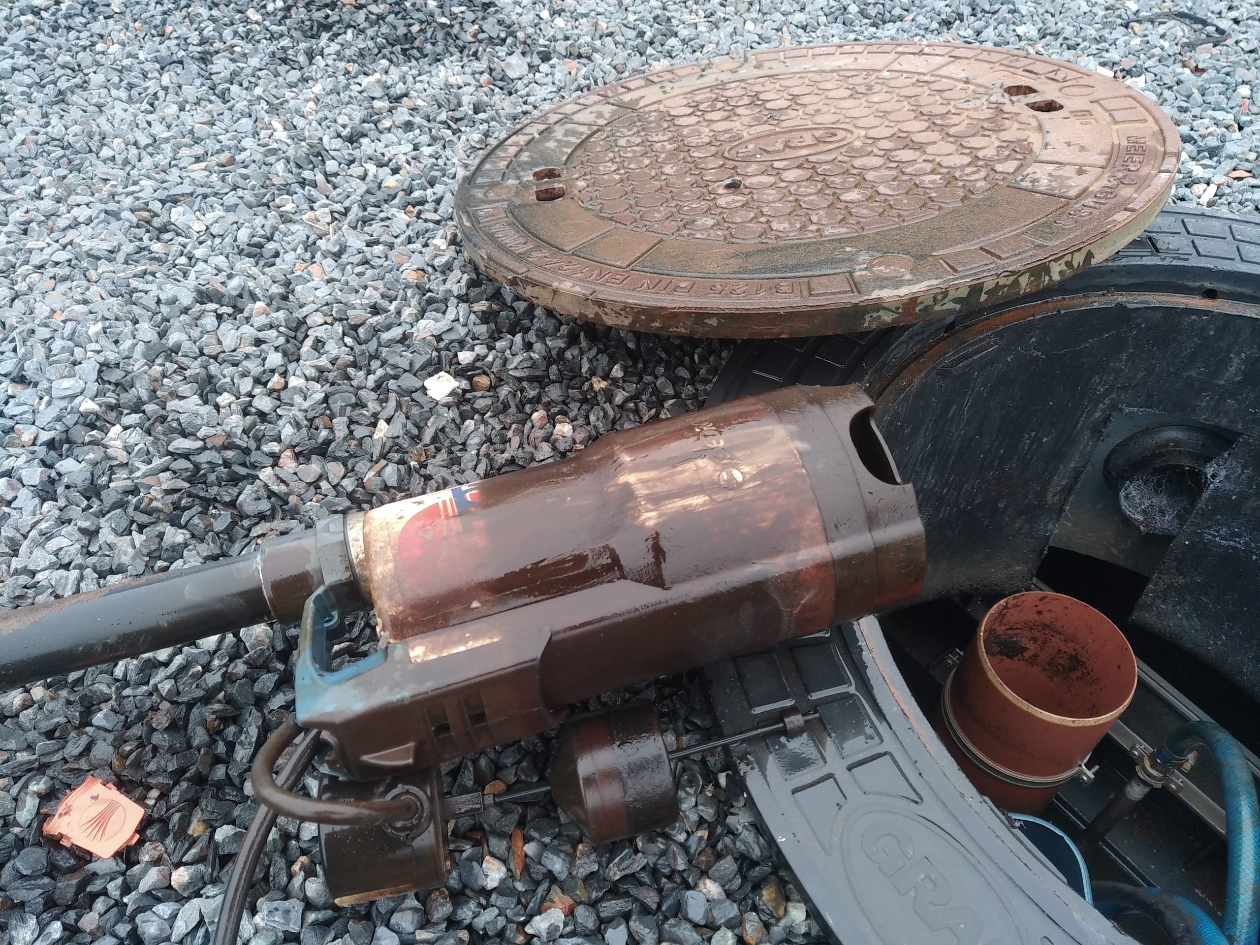 Les propos diffamatoires de ce type de dispositif d’assainissement non collectif sont souvent fondés sur l’observation de traces brunes sur différents accessoires en sortie de filière. C’est en effet le cas aujourd’hui, lors de l’extraction de la pompe de refoulement des eaux traitées ( pompe Perdollo Top 3 GM Vortex ).
