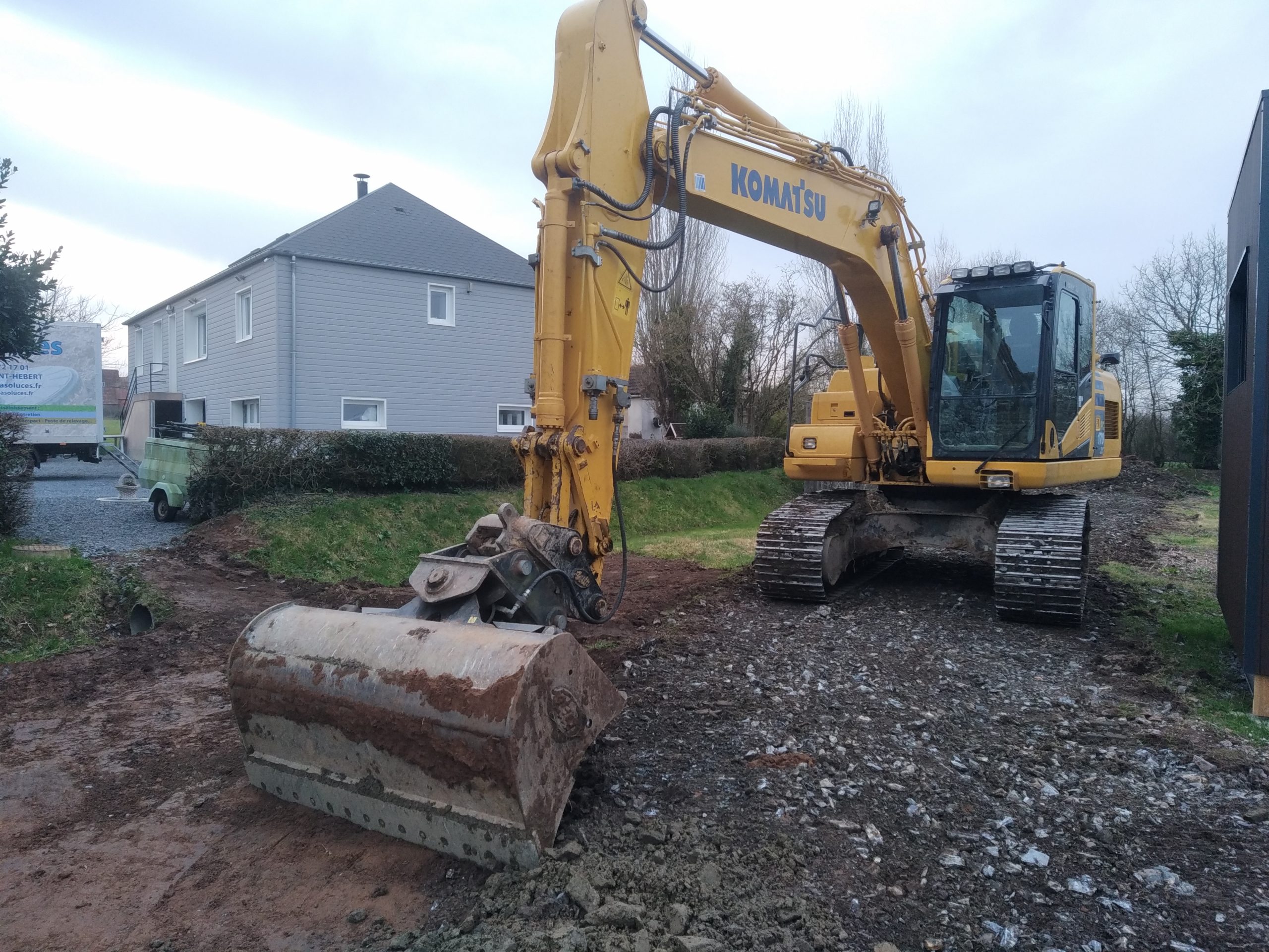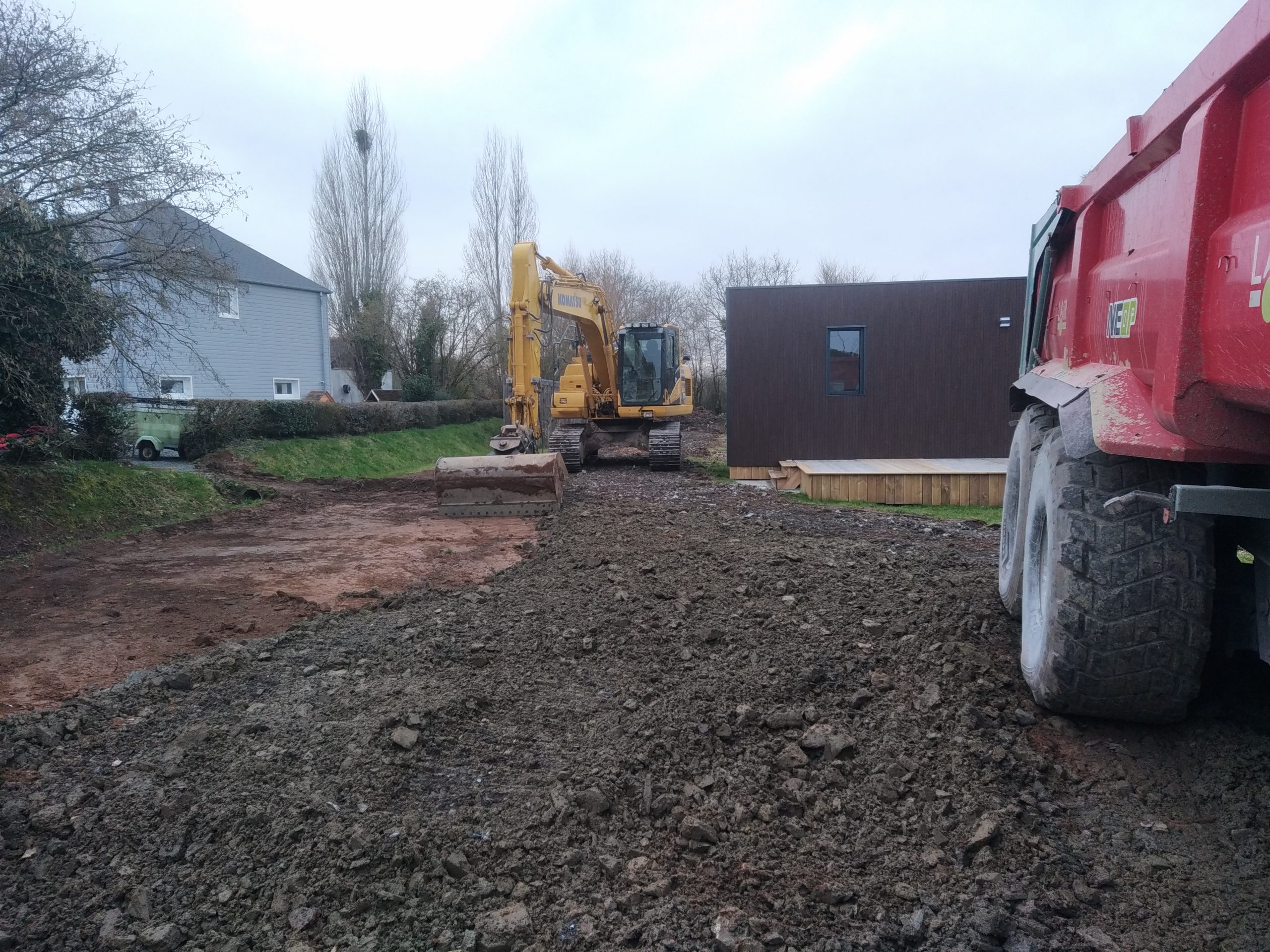 Nous profitons d’une météo favorable pour faire réaliser nos aménagements extérieurs par Fossey Le Blond TP .