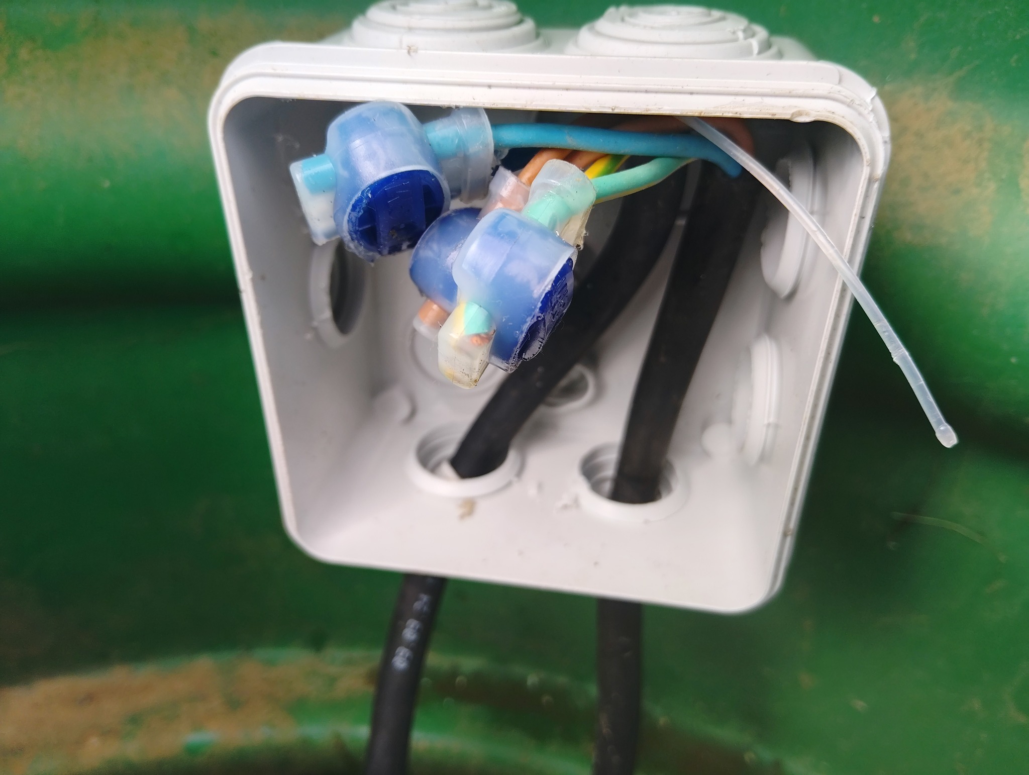 Le raccord électrique étanche est refait avec l’emploi de connecteurs IP68 3M Scotchlock.