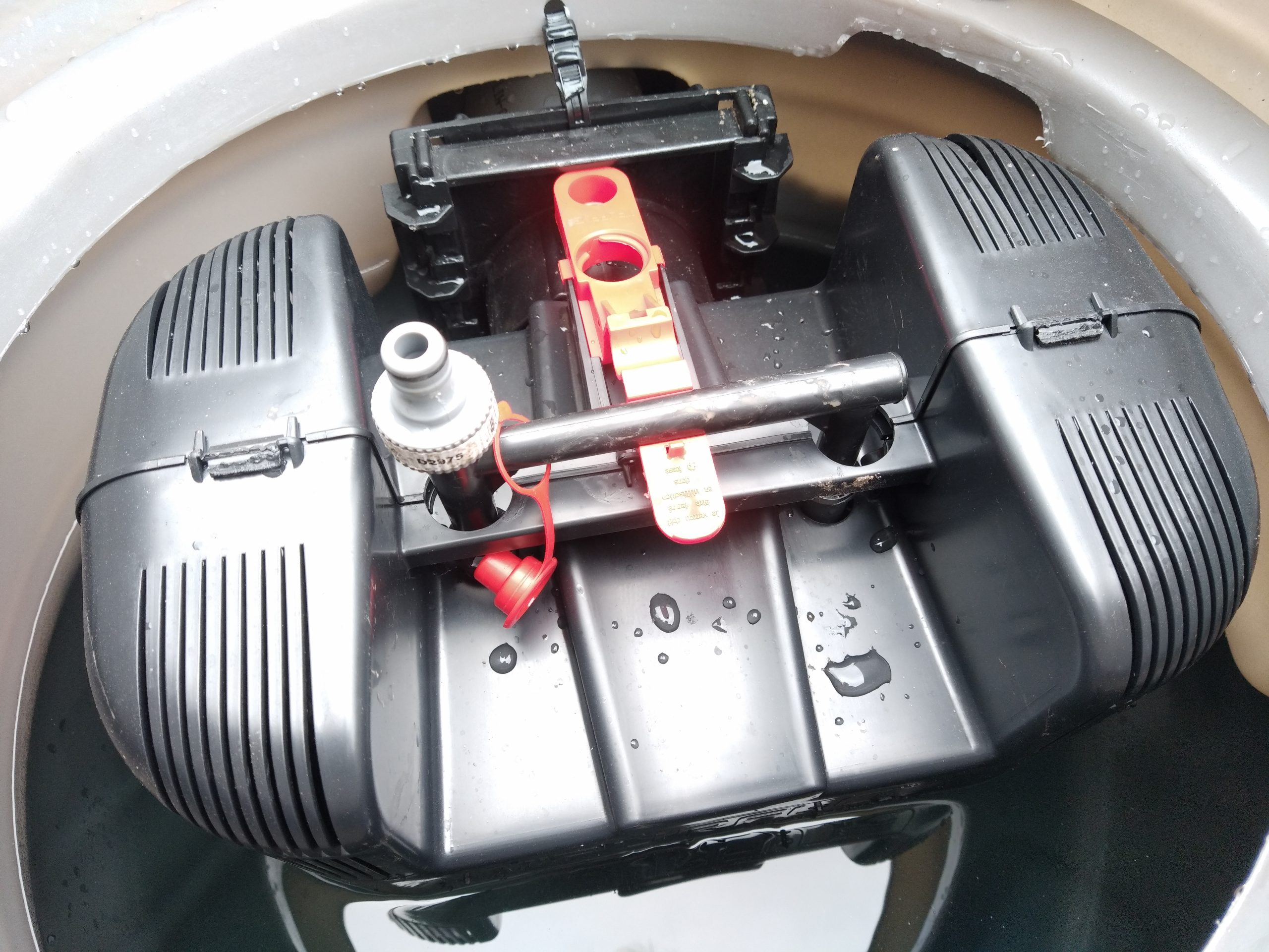 Nous procédons ensuite au lavage du préfiltre à lamelles PF-17, facilité grâce au raccord automatique pour tuyau d’arrosage.