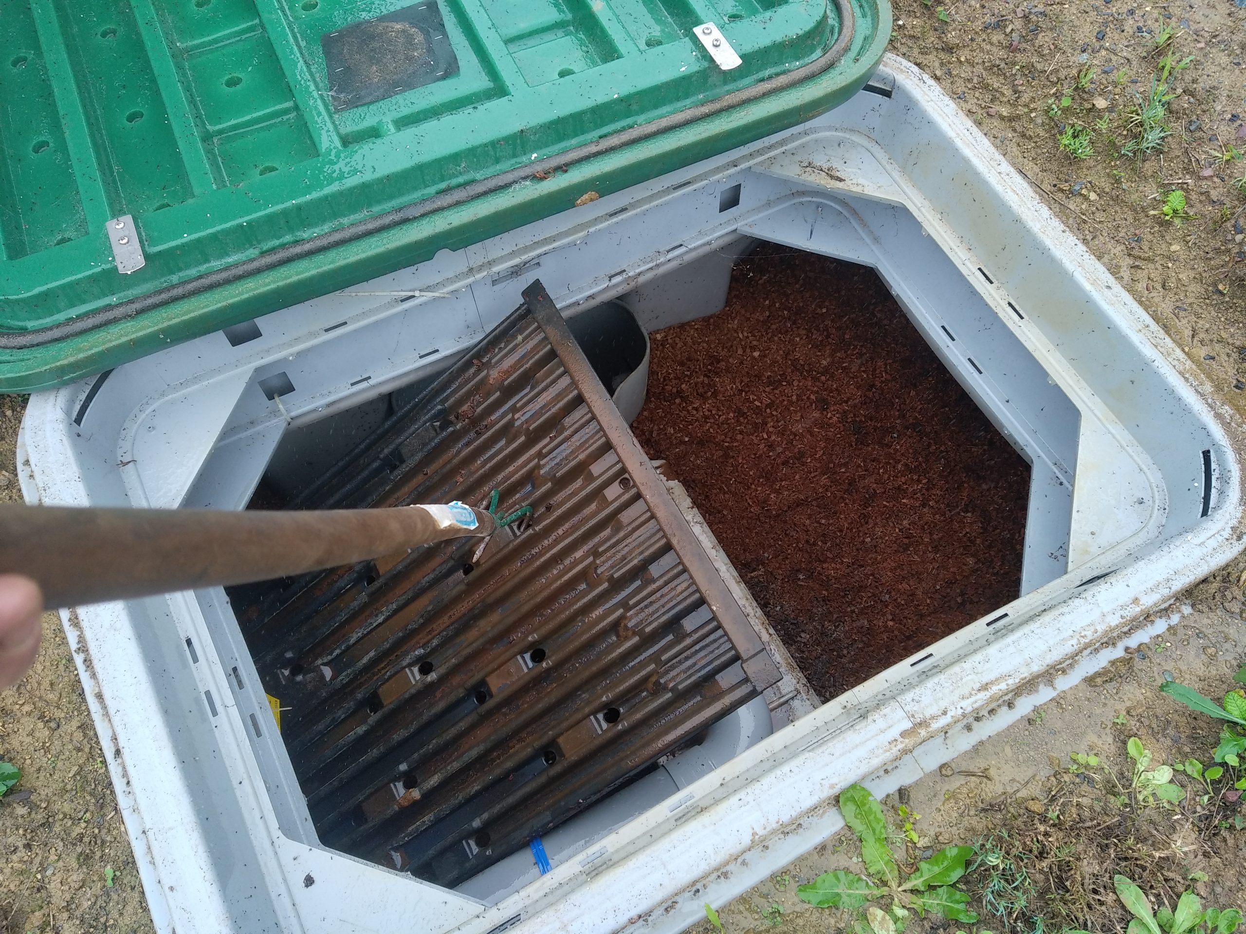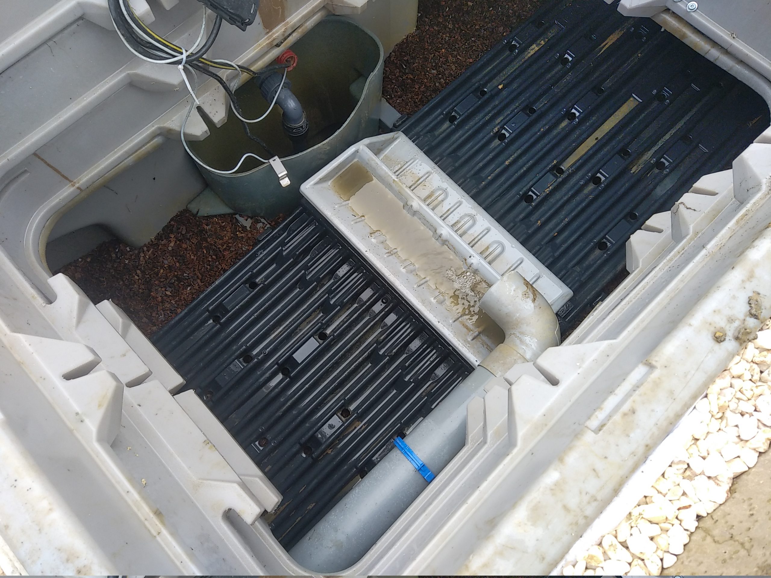 Entretien d’un filtre compact ECOFLO PE2 pack 5 EH sortie haute, de Premier Tech, avec pompe intégrée, après 5 ans d’utilisation, en résidence principale par 2 usagers.
