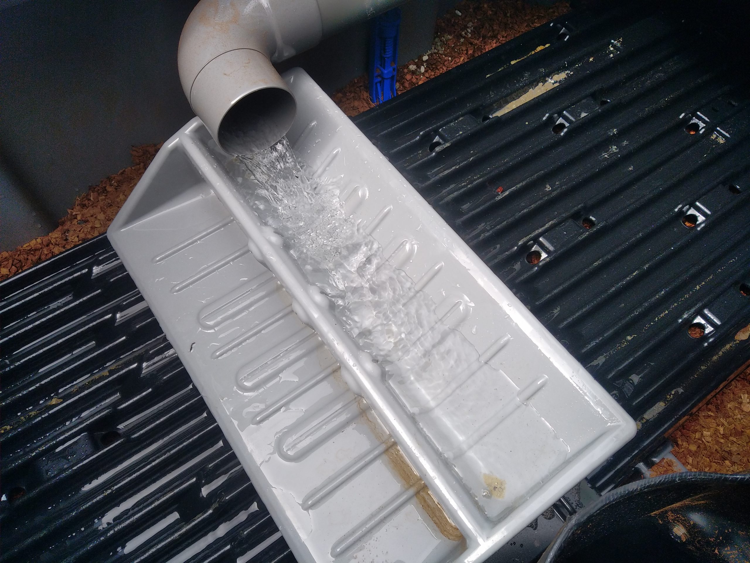 Le système de dispersion des effluents est remonté et l’auget soigneusement réglé à l’aide de ses pieds ajustables.