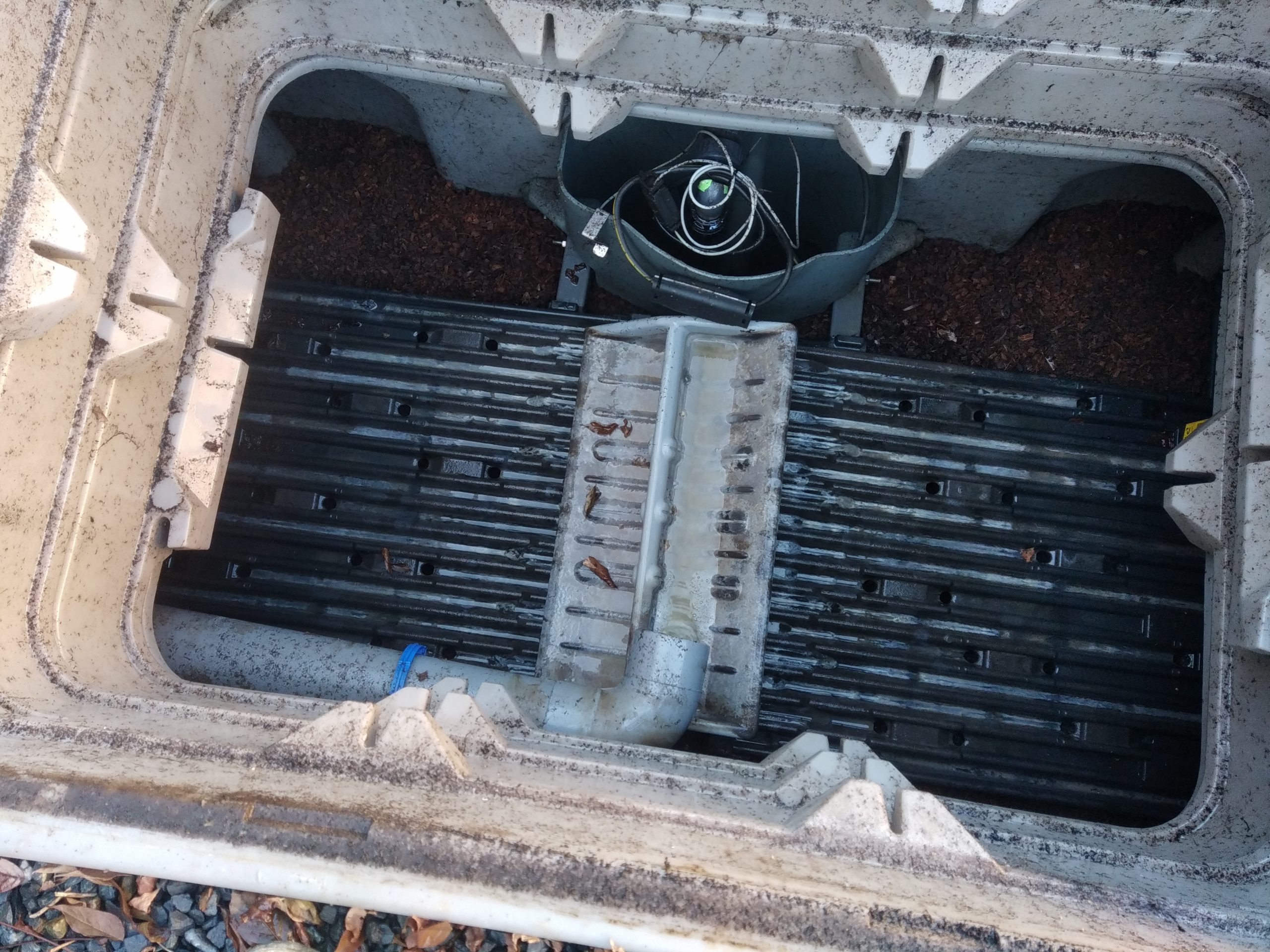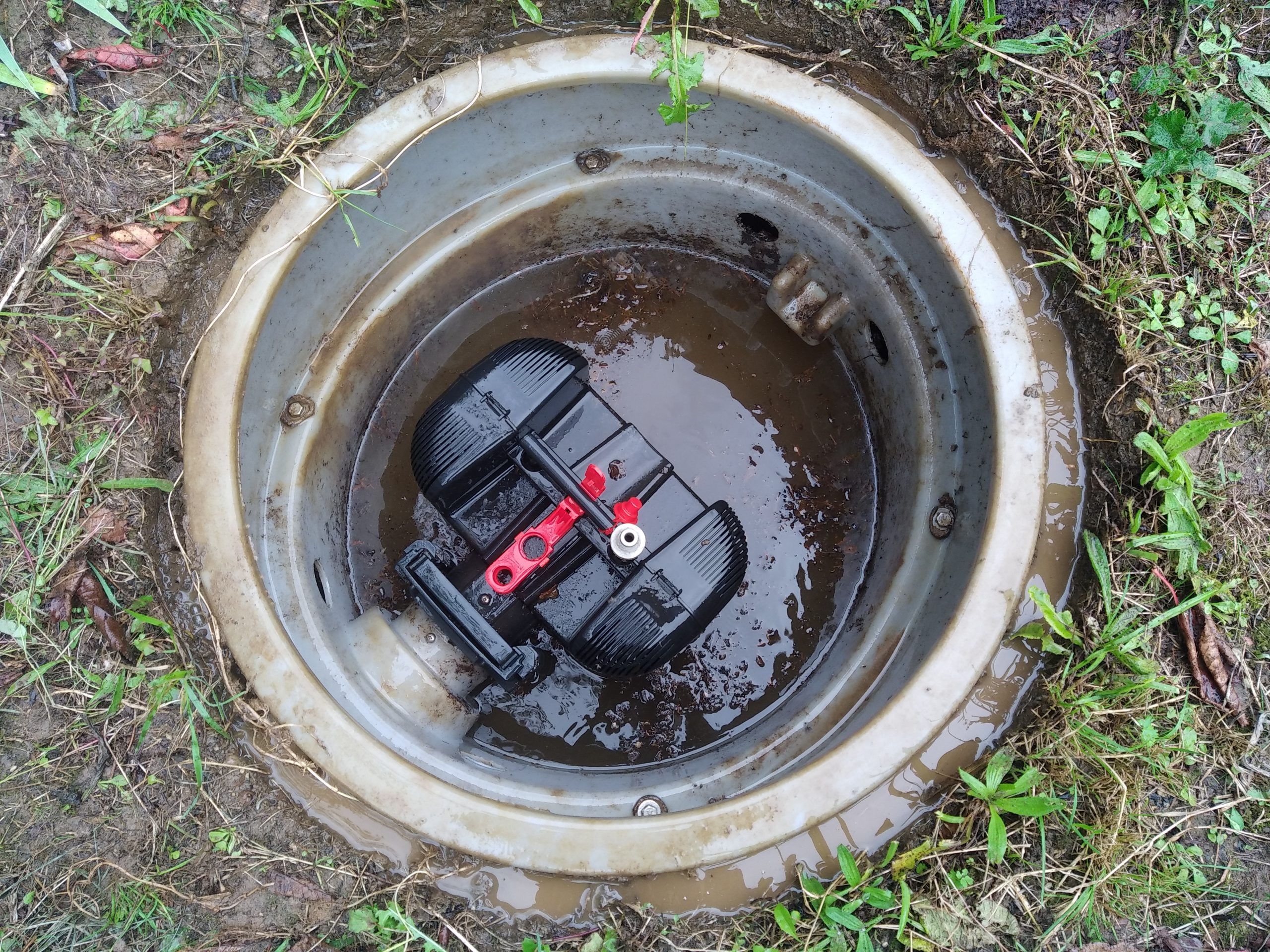 Enfin, la pompe de relevage des eaux traitées est extraite, lavée, replacée puis testée.