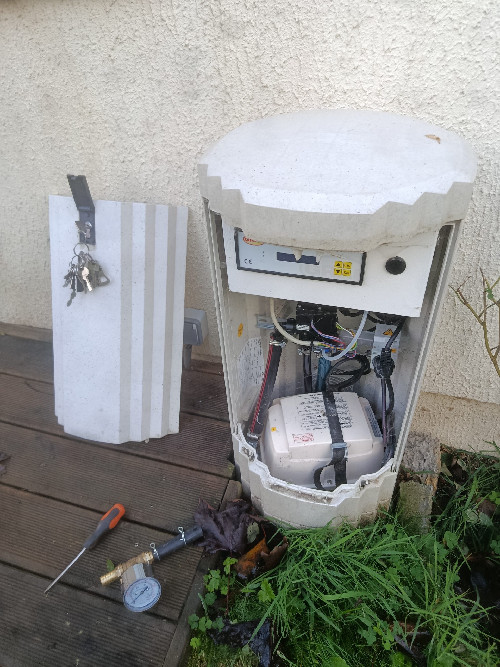 Nous intervenons aujourd’hui pour l’entretien de cette filière compacte composée d’une micro station Graf easyOne 5 EH , d’un poste de relevage des eaux traitées, conçu et fabriqué sur-mesures, et d’une tranchée d’infiltration à faible profondeur.