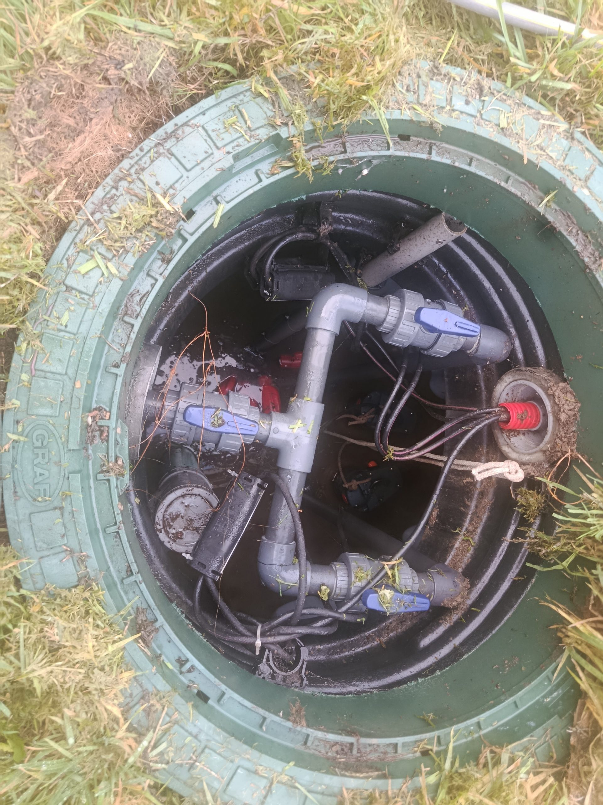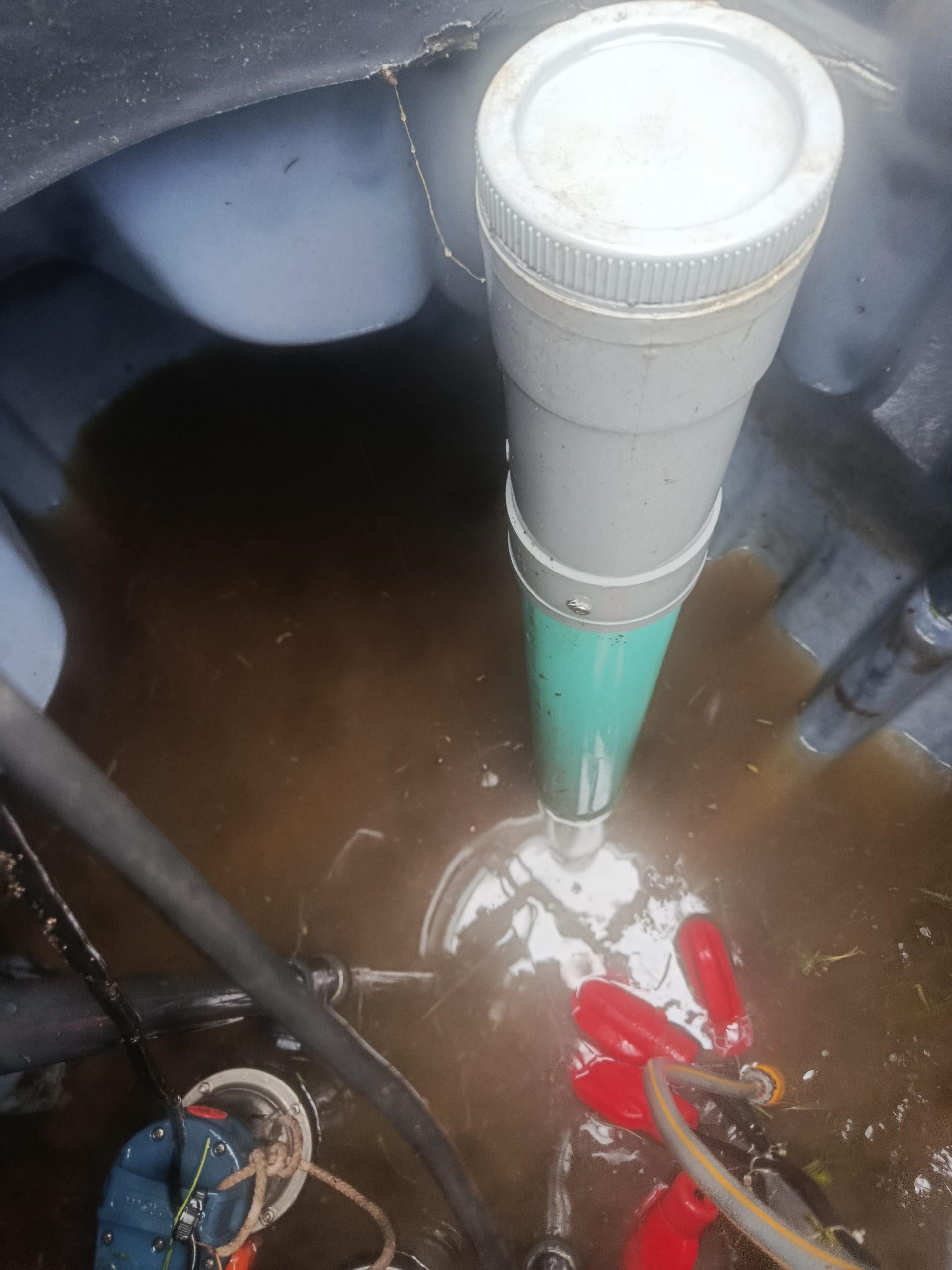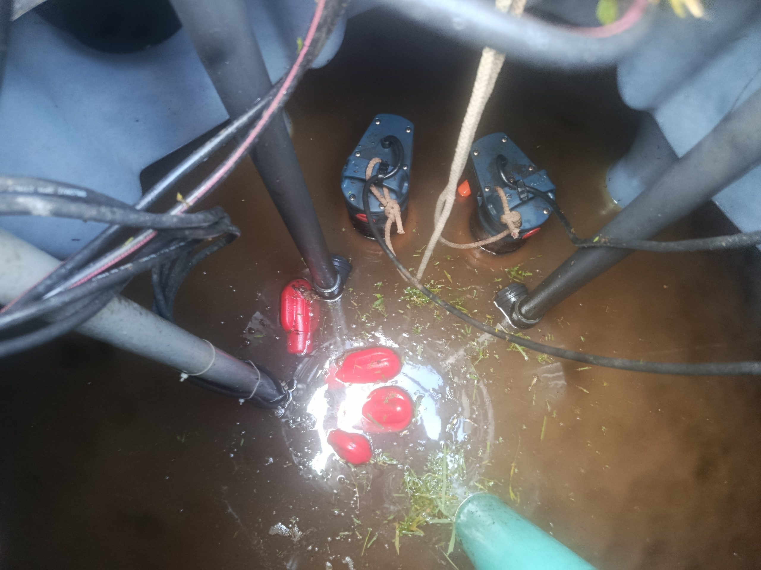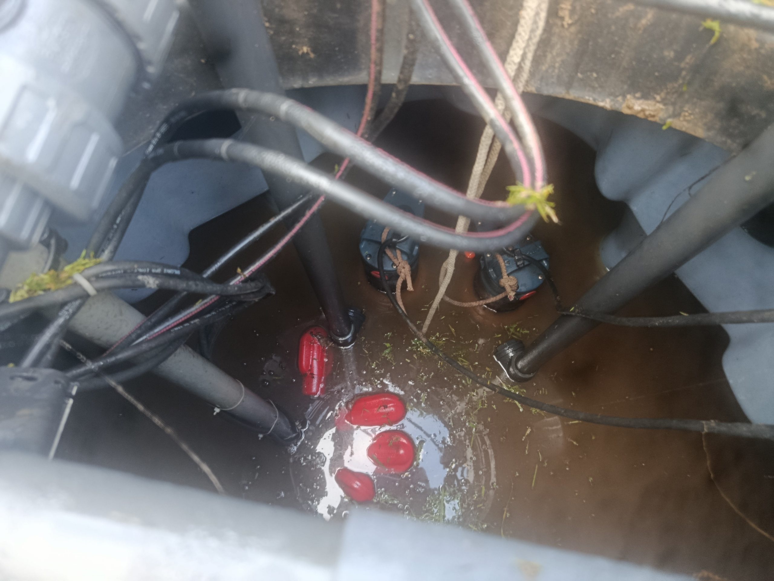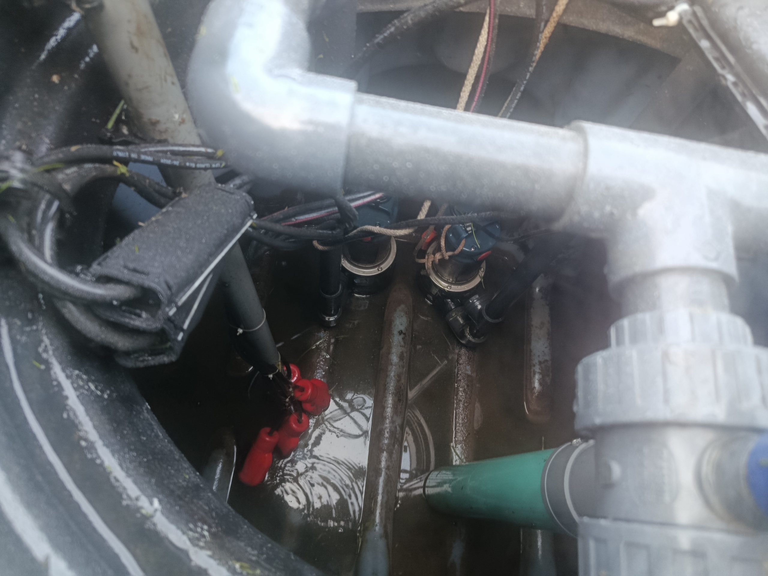 Nous nous attardons dans le poste de relevage avec l’extraction et le lavage des 2 pompes Pedrollo ZXm 2/40-GM et de leur clapet anti-retour et le lavage des 4 flotteurs.