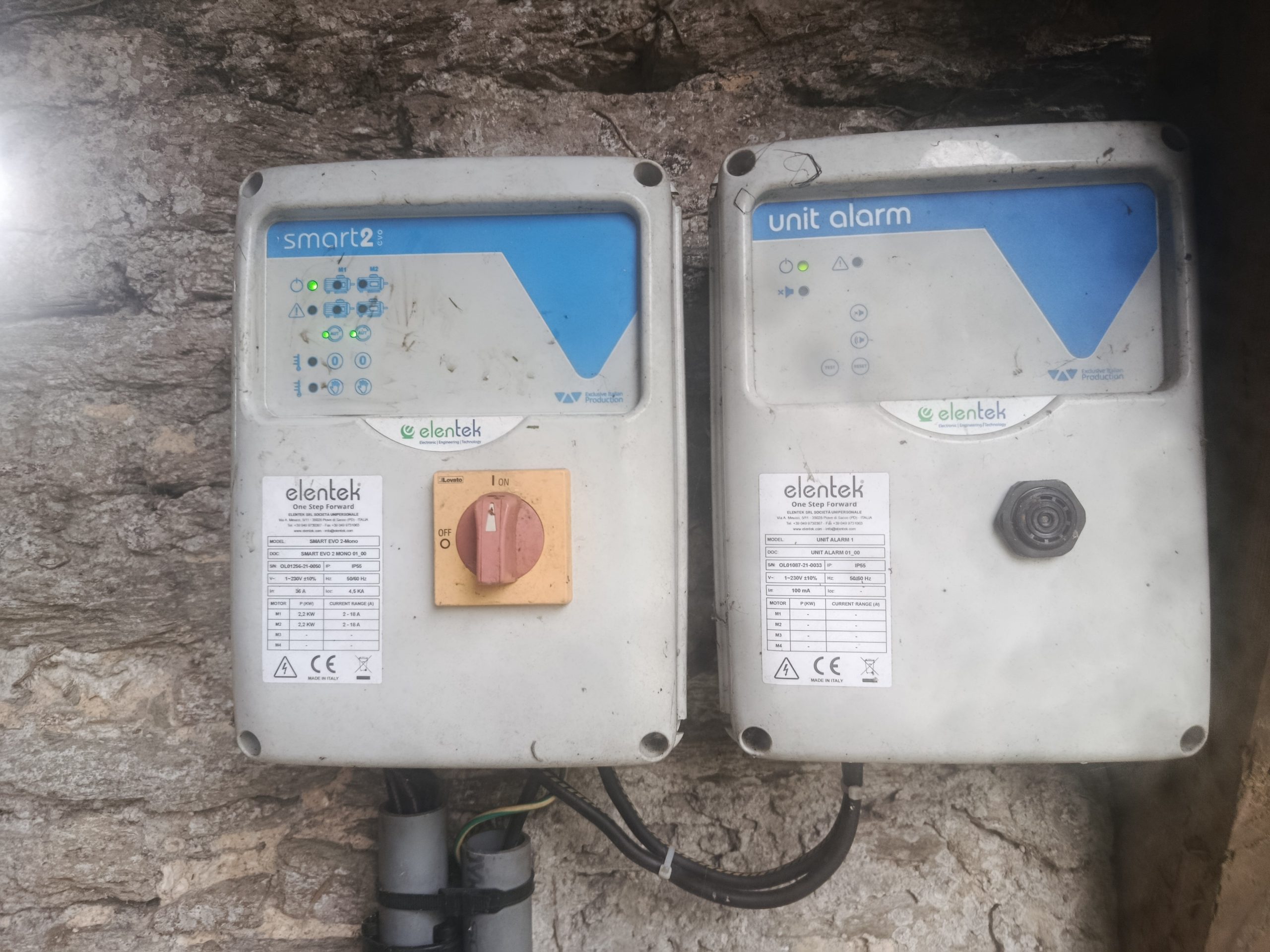 Après remontage, nous effectuons différents tests. Nous vérifions le bon fonctionnement du coffret de pilotage des pompes, modèle Elentek Smart EVO 2 et du coffret d’alarme.