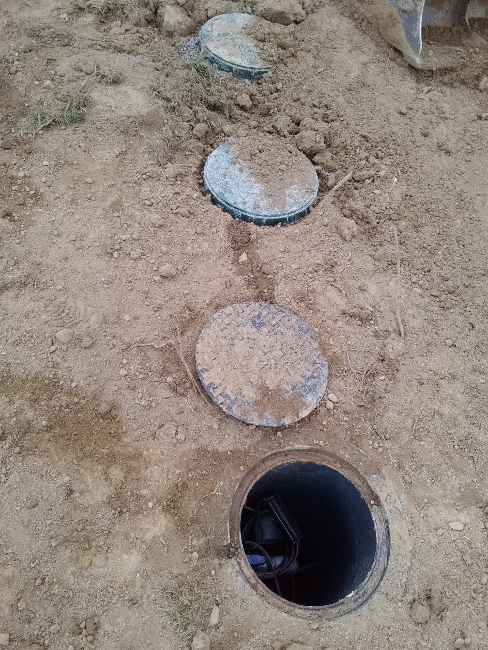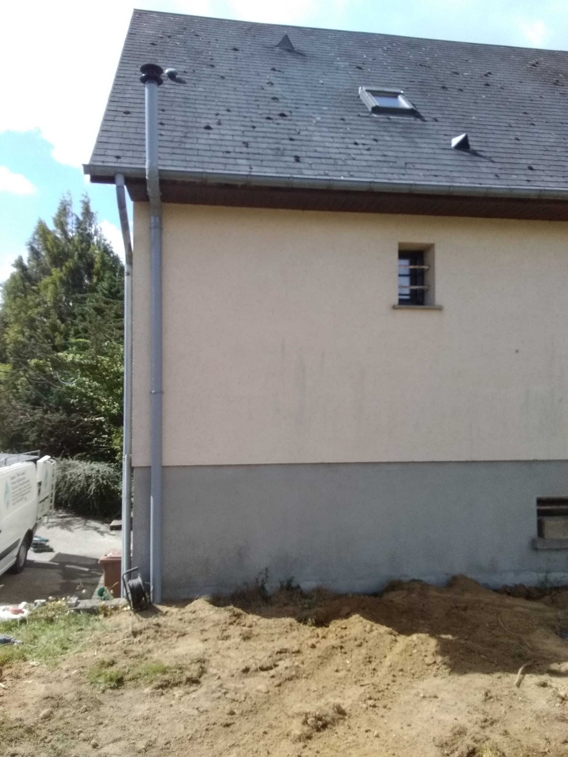 L’épandage est constitué de tuyaux d’épandage de diamètre 100 mm, avec fentes positionnées vers le bas, le tout noyé dans un massif de gravier 20/40 mm puis recouvert d’un géotextile.