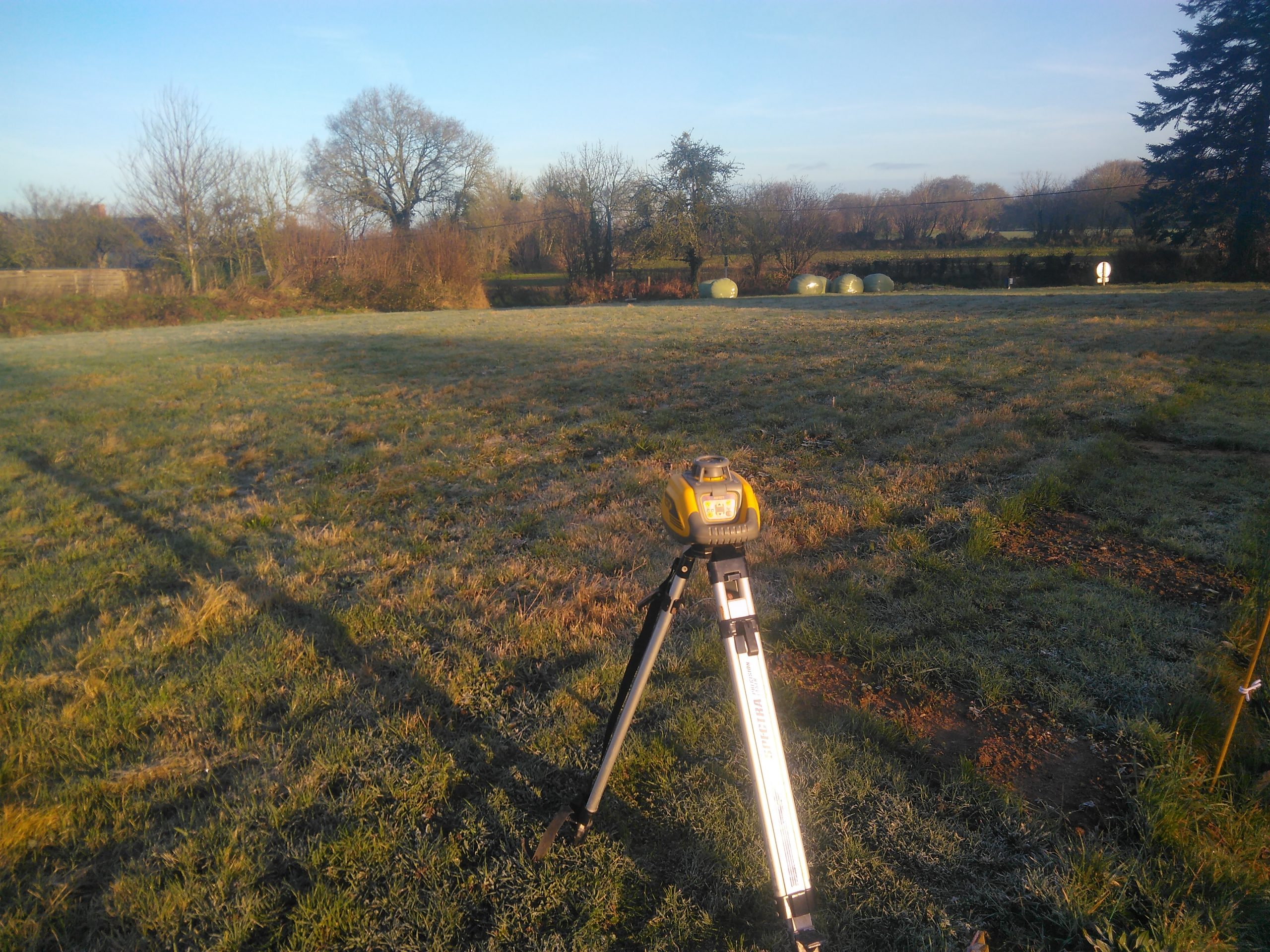 Les niveaux du terrain sont soigneusement relevés en utilisant un appareil optique, laser, de précision.