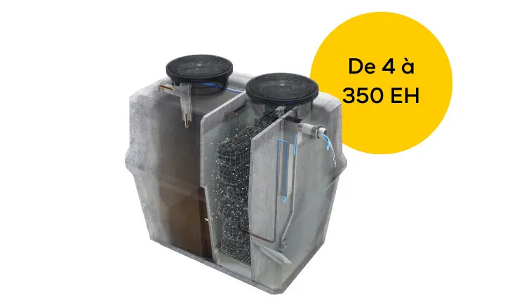 La filière compacte OXYFIX R-90 MB 4 EH, de type Microstation à culture fixée, est fabriquée par ELOY WATER.