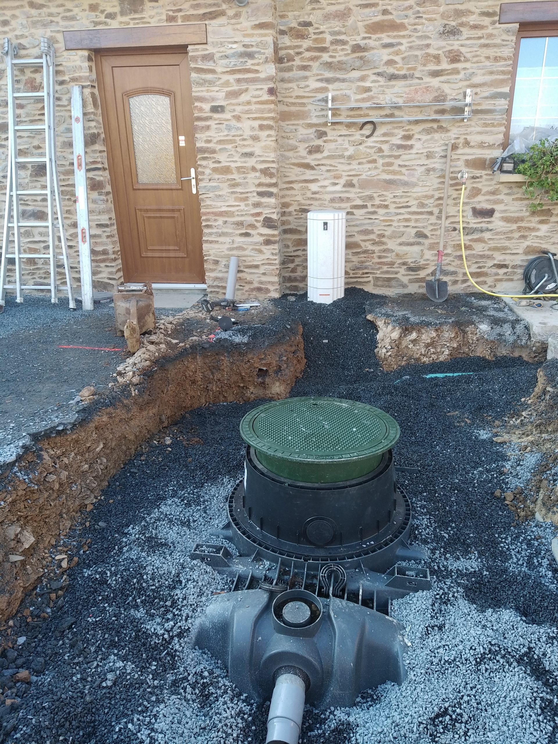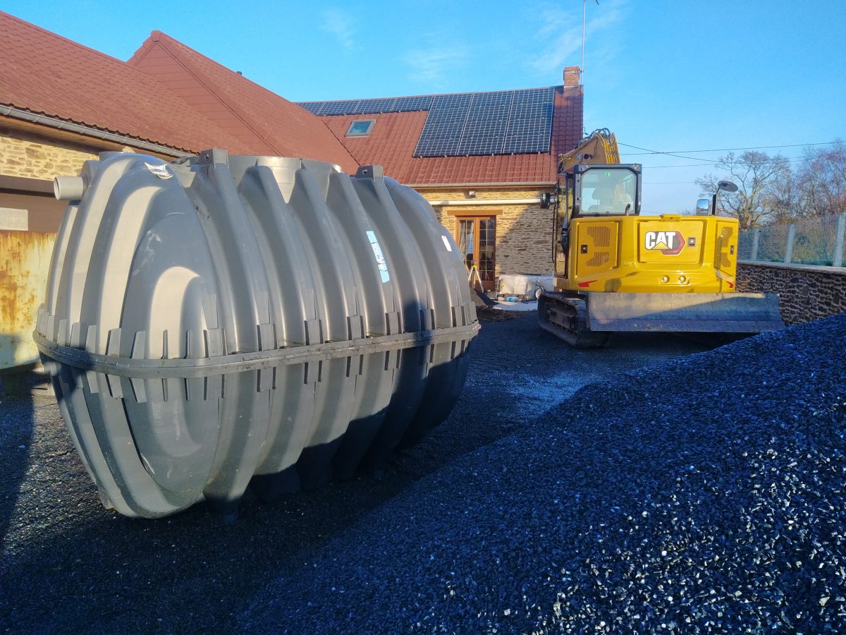 Notre étude, réalisée en Septembre 2023, préconisait l’installation d’une micro-station Graf easyOne 7 EH avec rejet au fossé, préalablement autorisé par le conseil départemental du Calvados. Une infiltration partielle et tout de même réalisée en amont afin de limiter les volumes de rejet vers cet exutoire.