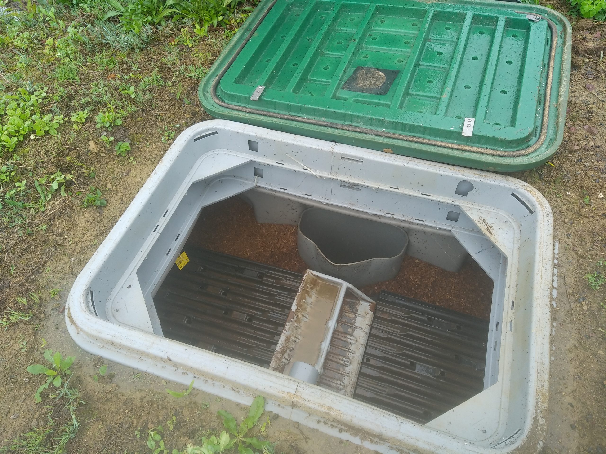 Nous intervenons aujourd’hui pour le premier entretien d’un filtre compact Ecoflo pack 5 EH sortie basse, après 4 ans d’utilisation par 2 personnes.