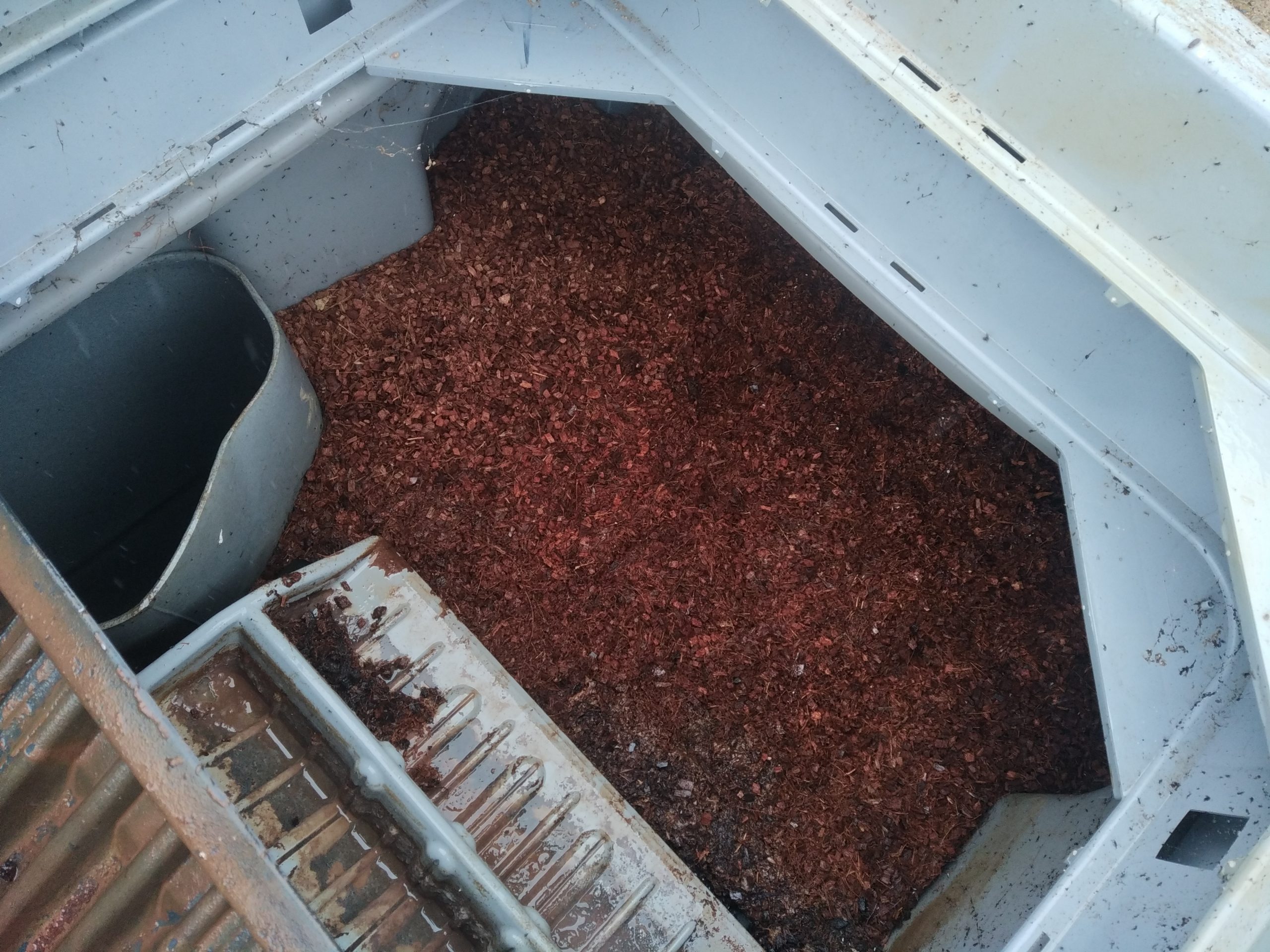 Malgré ce manque d’entretien, l’installation est en bon état général de fonctionnement. Voici cet aspect normal d’un filtre compact coco Ecoflo après 4 ans d’utilisation :