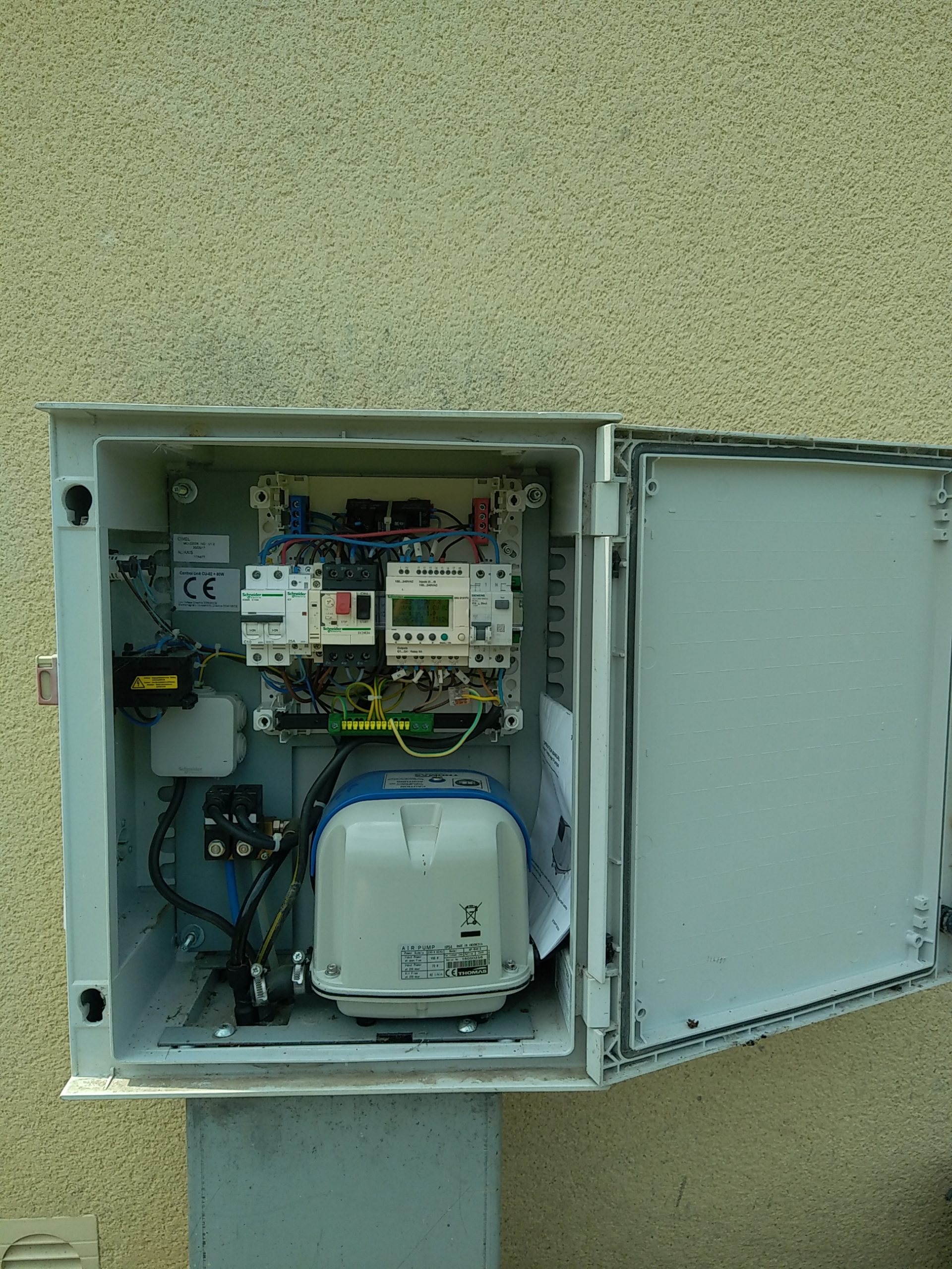 Nous vérifions ensuite le bon fonctionnement et nous procédons à l’entretien courant de cette micro-station d’épuration et de son compresseur à membranes Thomas AP-80.
