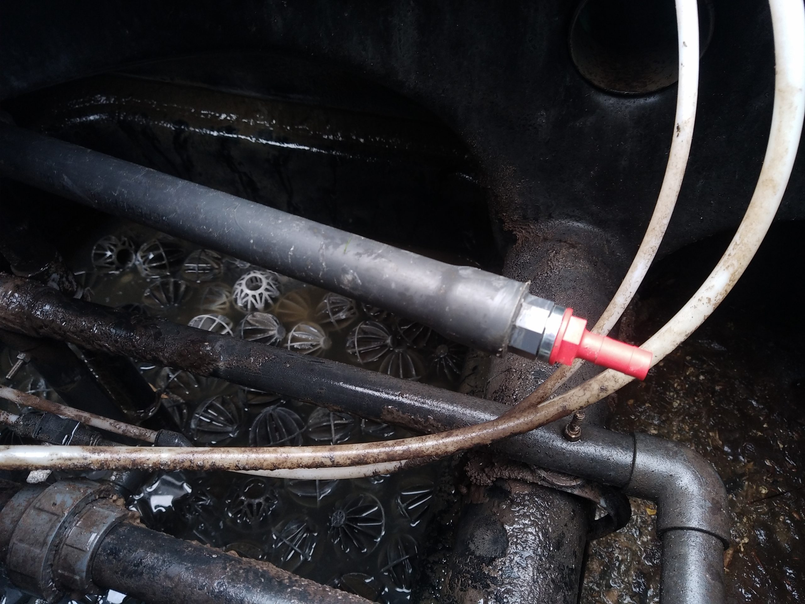 Dès notre arrivée, nous constatons que l’aération dans le réacteur biologique n’est plus assurée. En effet, le raccord d’air s’est cassé à cause de la corrosion.