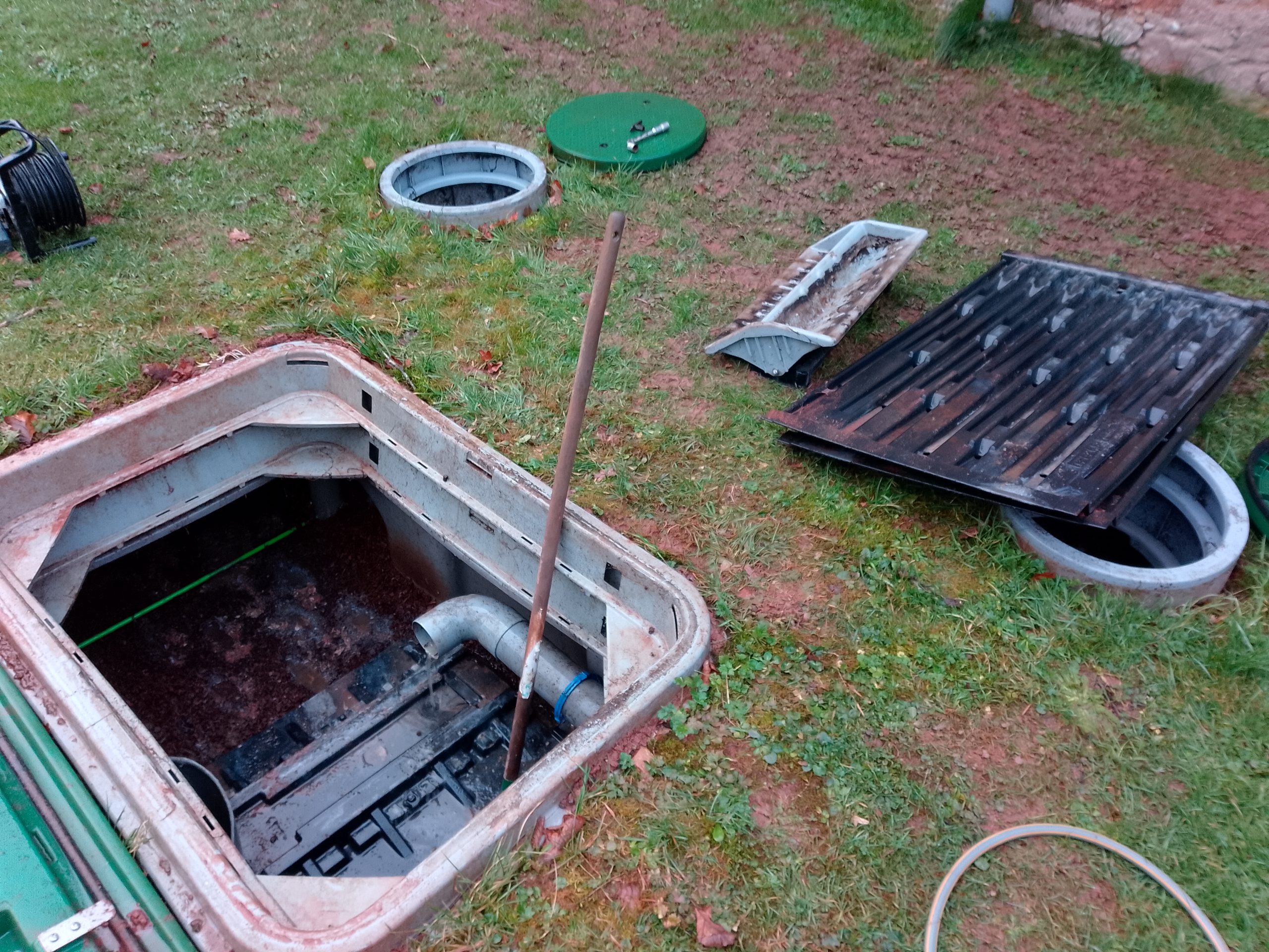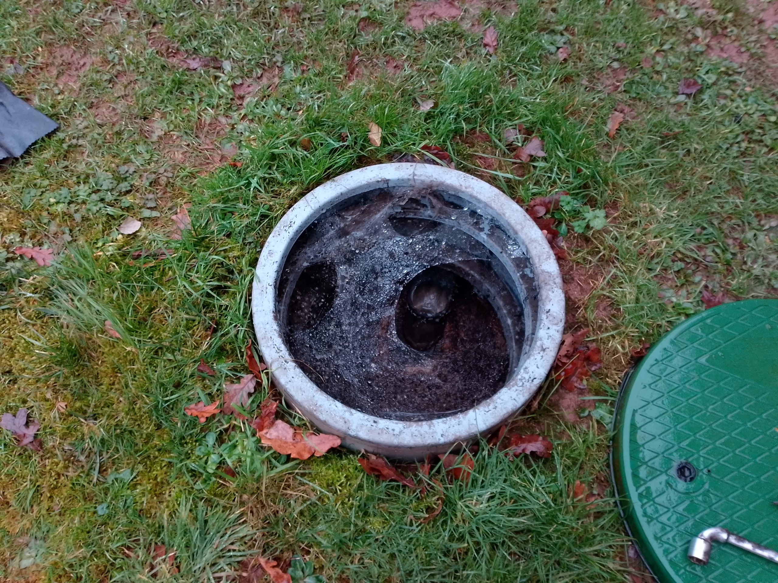 Mesure de boue dans la fosse toutes eaux. Le niveau de boues accumulées est à 5%, aucune vidange n’est à prévoir dans l’immédiat.