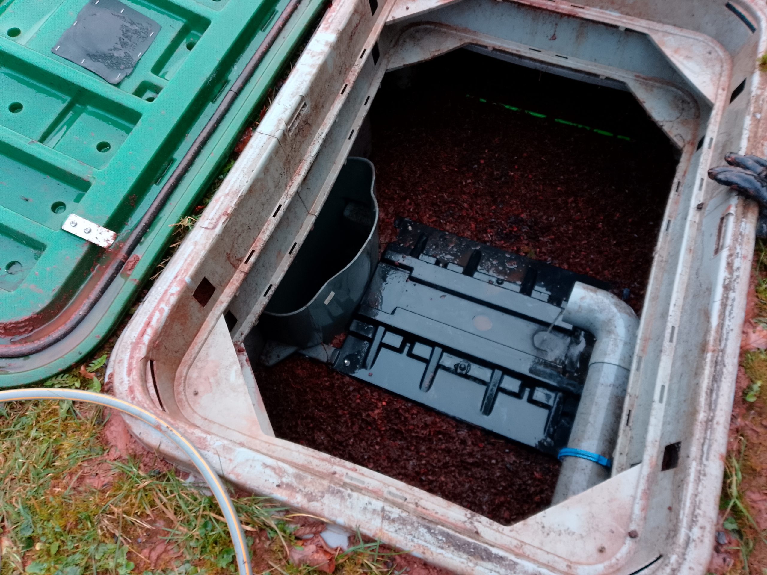 Nous intervenons aujourd’hui à Geffosses-Fontenay pour l’entretien d’un filtre compact Ecoflo 5 EH pack sortie haute, avec pompe de relevage intégrée.