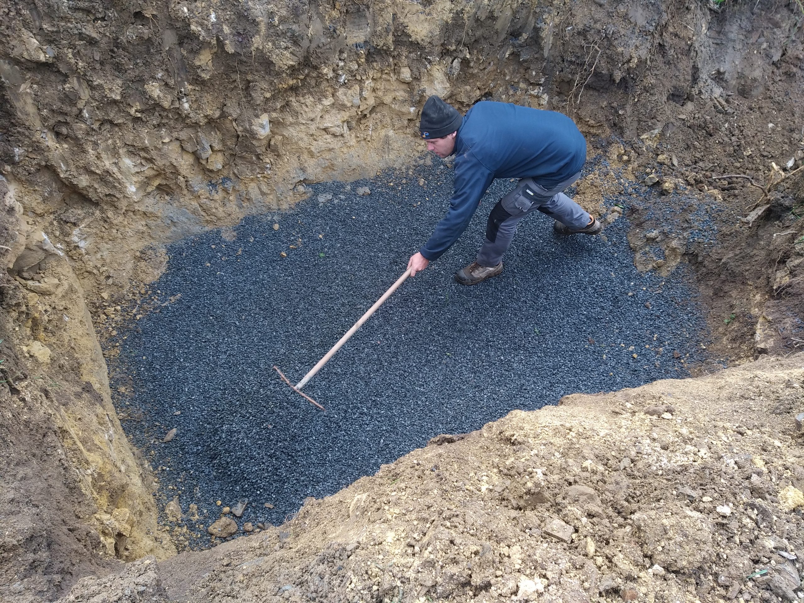 Le chantier est réalisé par la SARL Fossey Le Blond TP de Saint-Georges-Montcocq (50000), selon une conception AQUAsoluces.