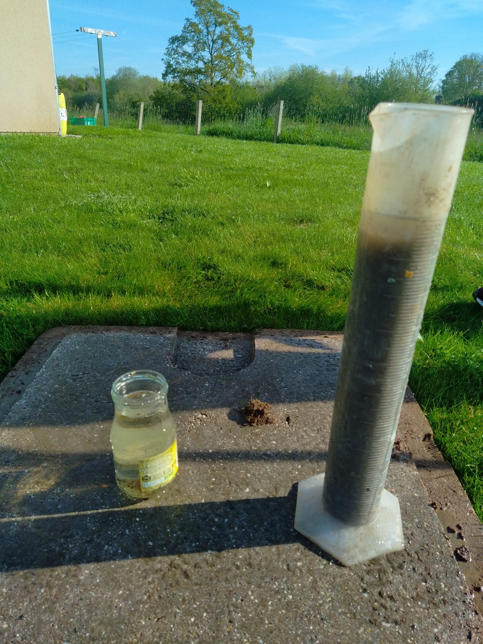 Cette installation est en très bon état, après 7 ans d’utilisation. Un prélèvement instantané en sortie permet de vérifier la qualité du rejet qui reste clair, translucide, inodore et sans MES ( Matière En Suspension ) apparente.