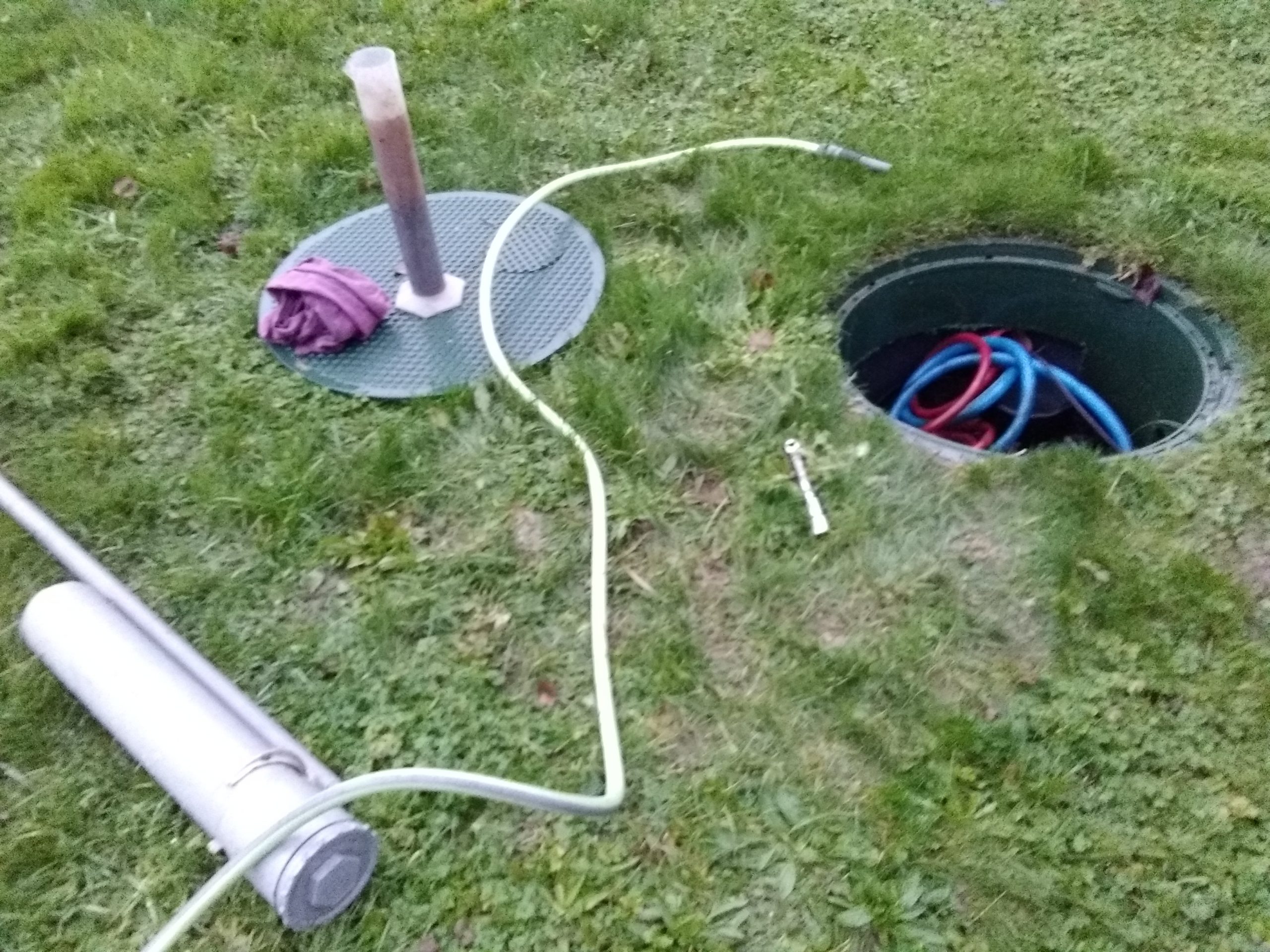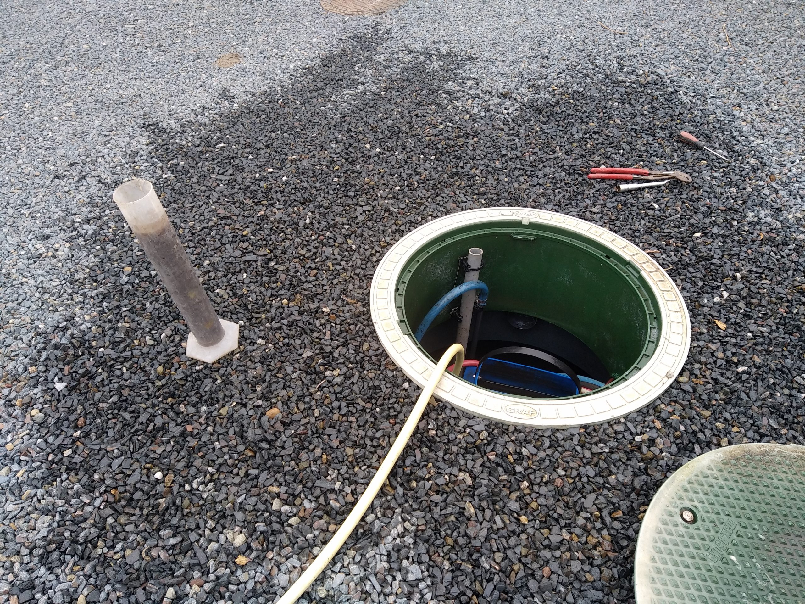 Nous intervenons aujourd’hui à Hambye (50450) pour l’entretien d’un dispositif d’Assainissement Non Collectif (ANC) composé d’une fosse toutes eaux, d’un poste de relevage et d’un épandage à faible profondeur.