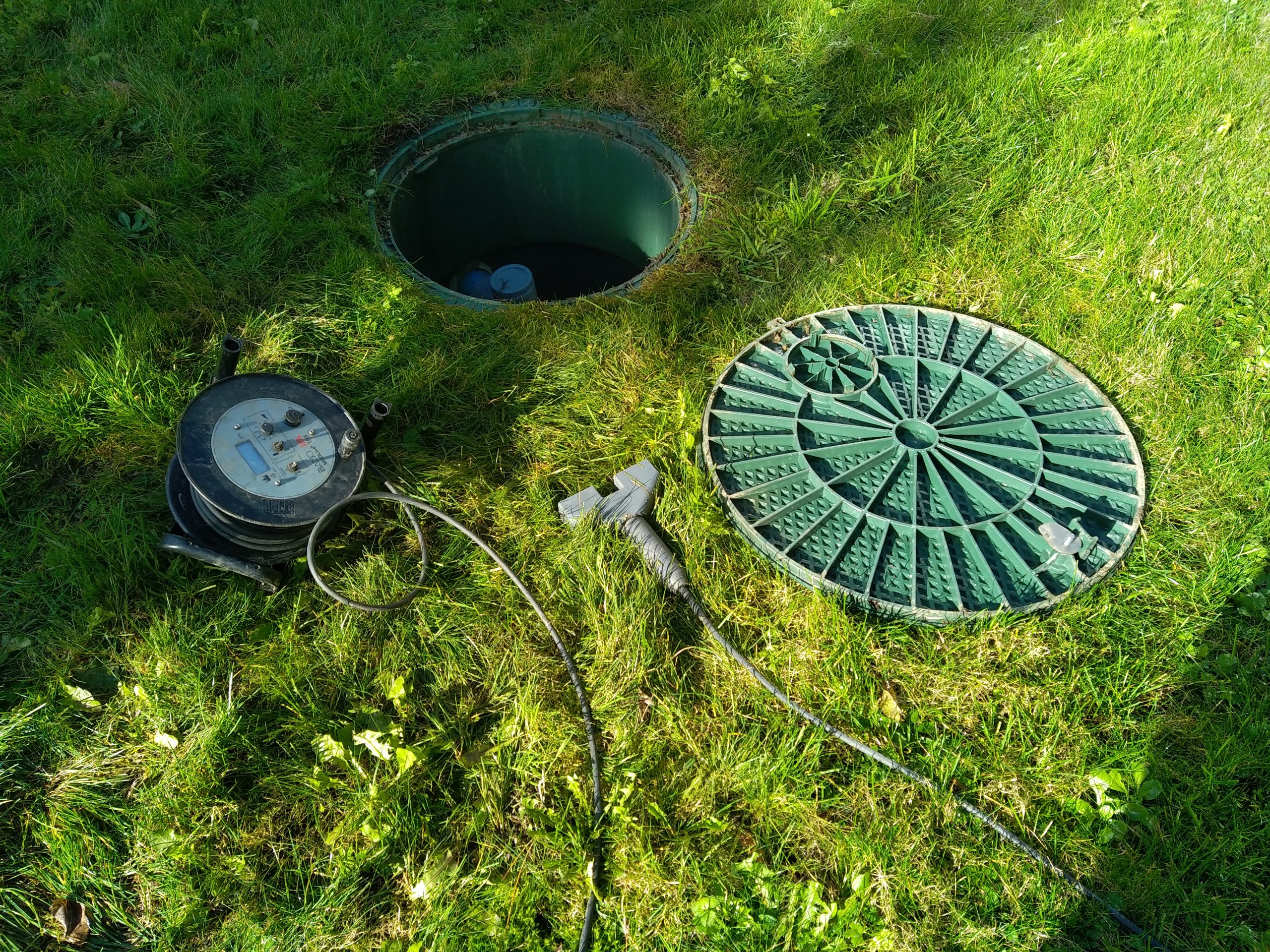 Enfin, nous effectuons une mesure de boue dans la fosse toutes eaux, à l’aide d’un appareil optique et pressométrique précis (Mudline TG), soit 9% … Une vidange s’impose à 50 %, il reste du temps !