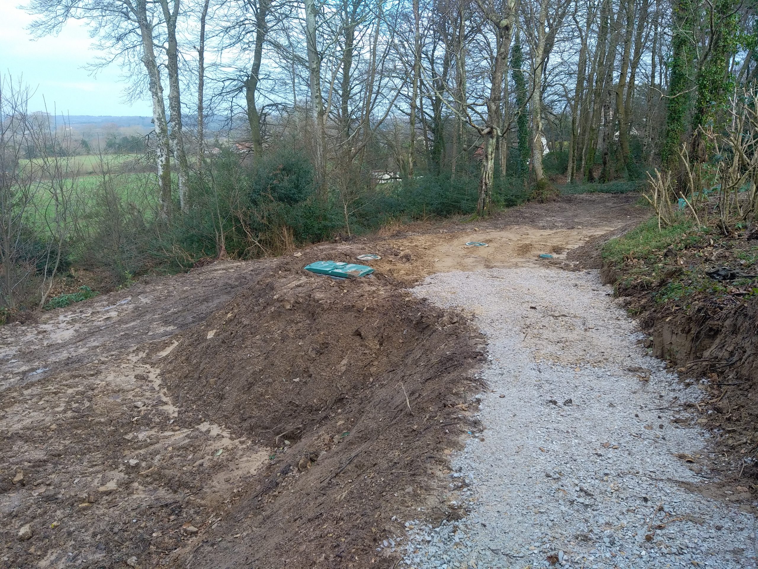 Sous cette pluie battante, notre partenaire de terrassement, BH2L / Entreprise Rosalie, de Saint-Marcouf de l’Isle ( 50310 ), en profite pour décharger et réceptionner la marchandise pour l’un de nos prochains chantiers d’ Assainissement Non Collectif à La Glacerie.