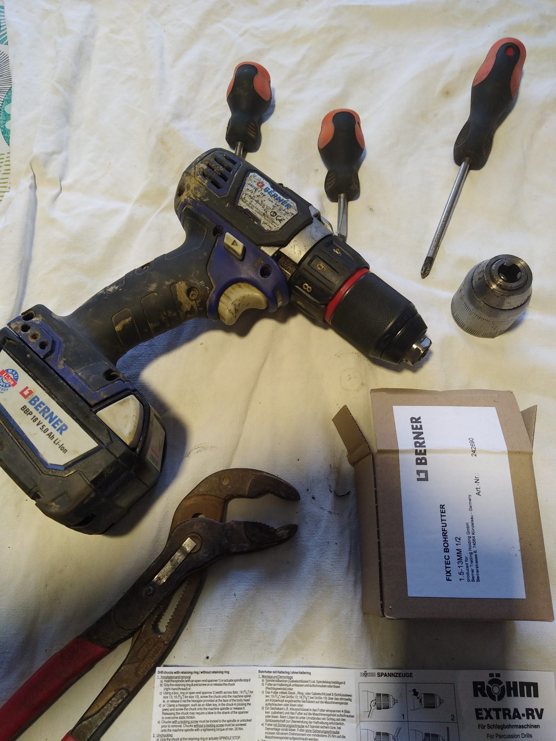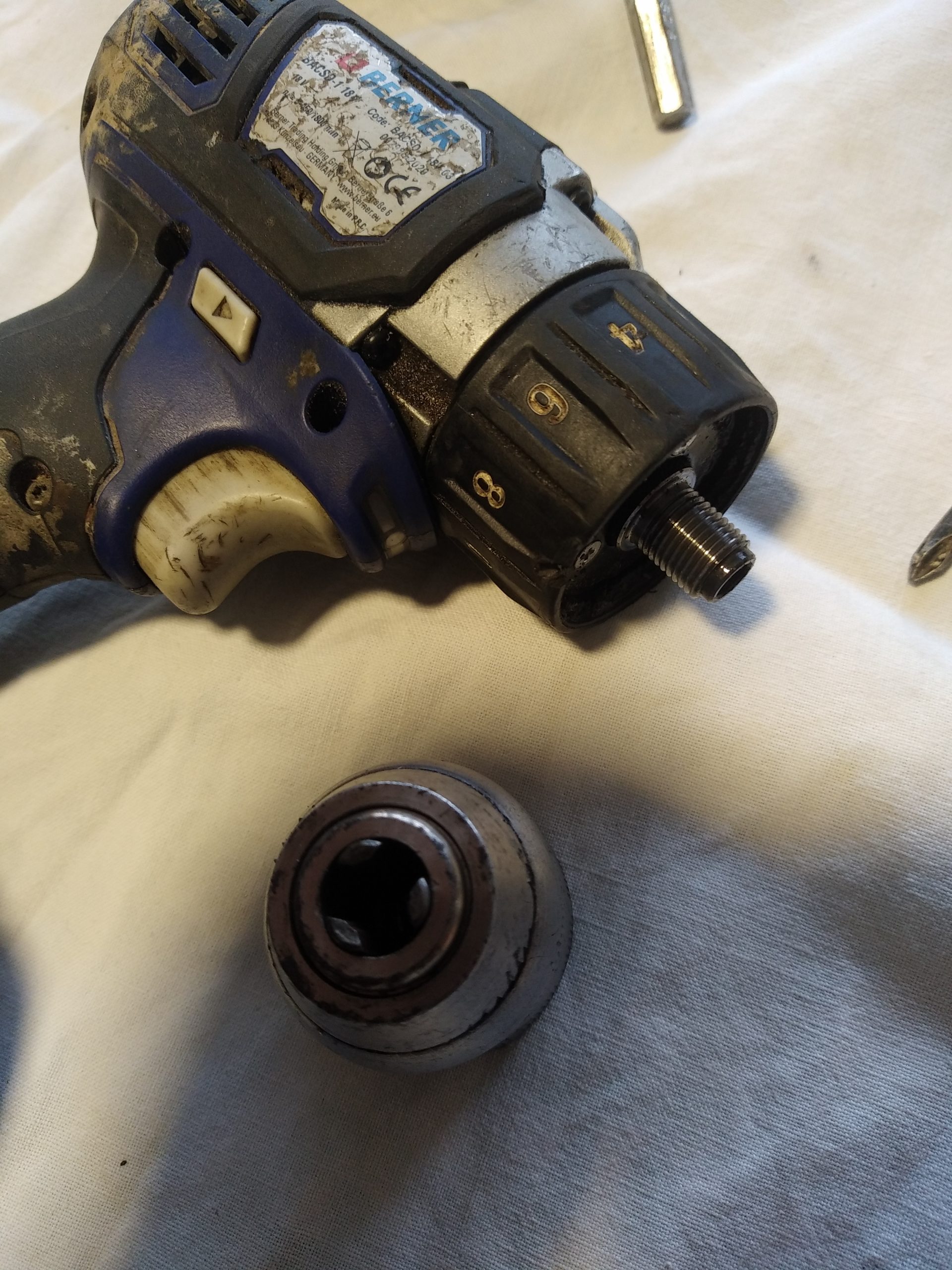 C’est le cas de notre visseuse Berner France dont le mandrin s’est irrémédiablement bloqué.