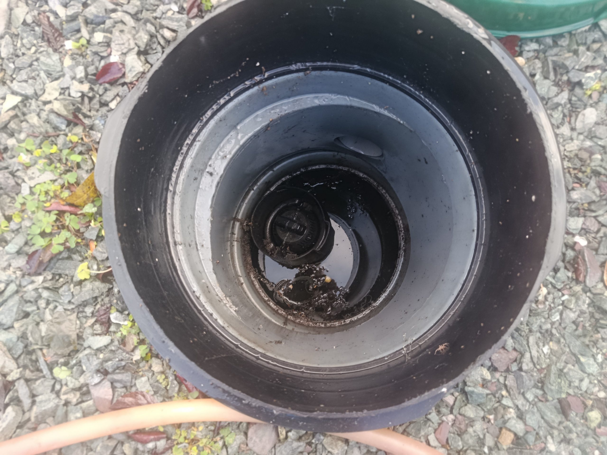 Lors de cet entretien, nous effectuons une mesure de boue primaire dans la fosse toutes eaux, nous nettoyons le pré-filtre, nous scarifions le massif de coquilles de noisettes concassées, nous lavons le système d’auget flottant et nous extrayons et nettoyons la pompe de relevage Pedrollo Top 3 GM Vortex et son clapet anti-retour.
