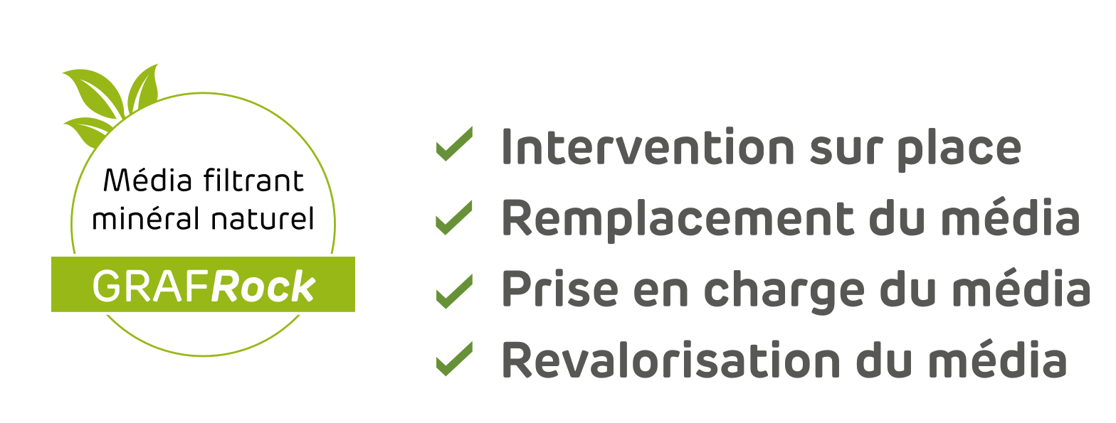 Le média filtrant GrafRock de ce filtre compact, composé de laine de roche, est garanti 10 ans. Il est à renouveler selon son état de dégradation et selon l’usage. Chaque installation est donc unique !