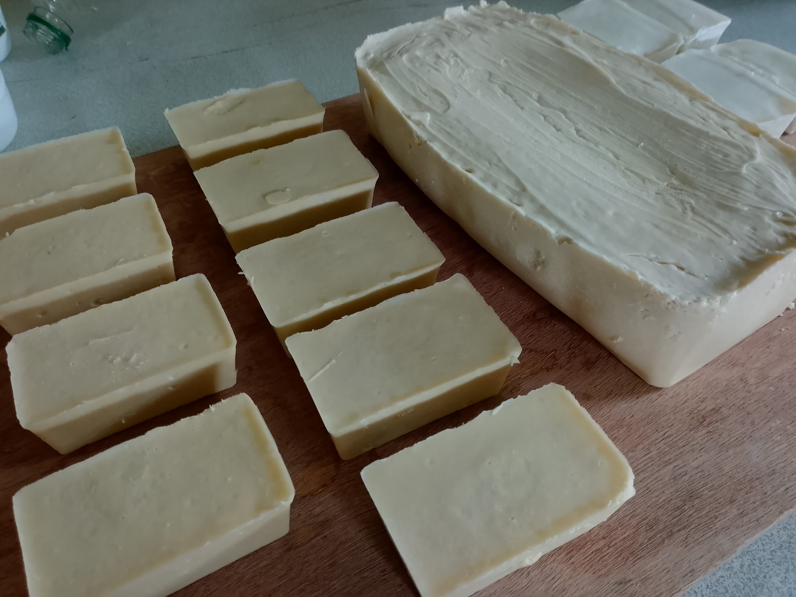 Ce savon est dosé pour être sur-gras à 5%. Le démoulage est effectué après 24 heures. Il faut ensuite attendre 15 jours minimum de cure, avant utilisation, pour que la réaction de saponification soit complète.