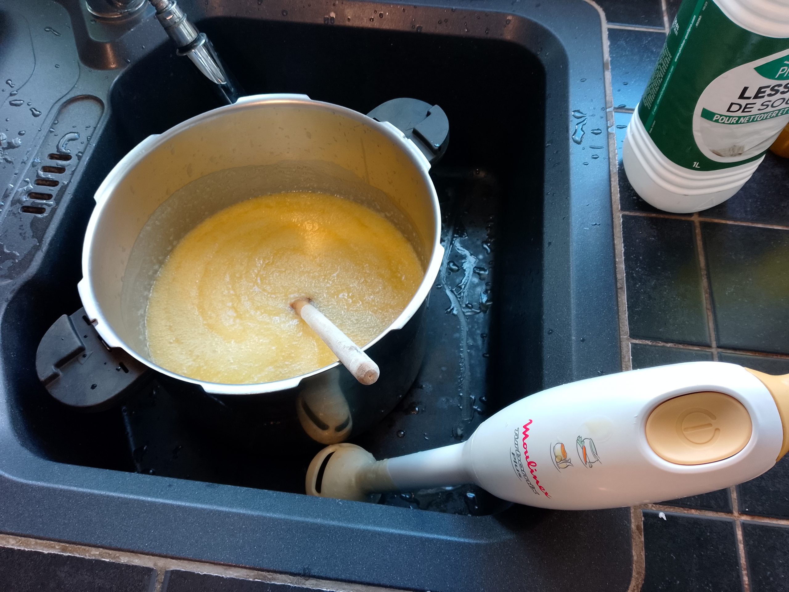 Le plus gros des deux blocs servira à faire du savon liquide pour la douche, le lavage de la vaisselle à la main et pour la machine à laver le linge.