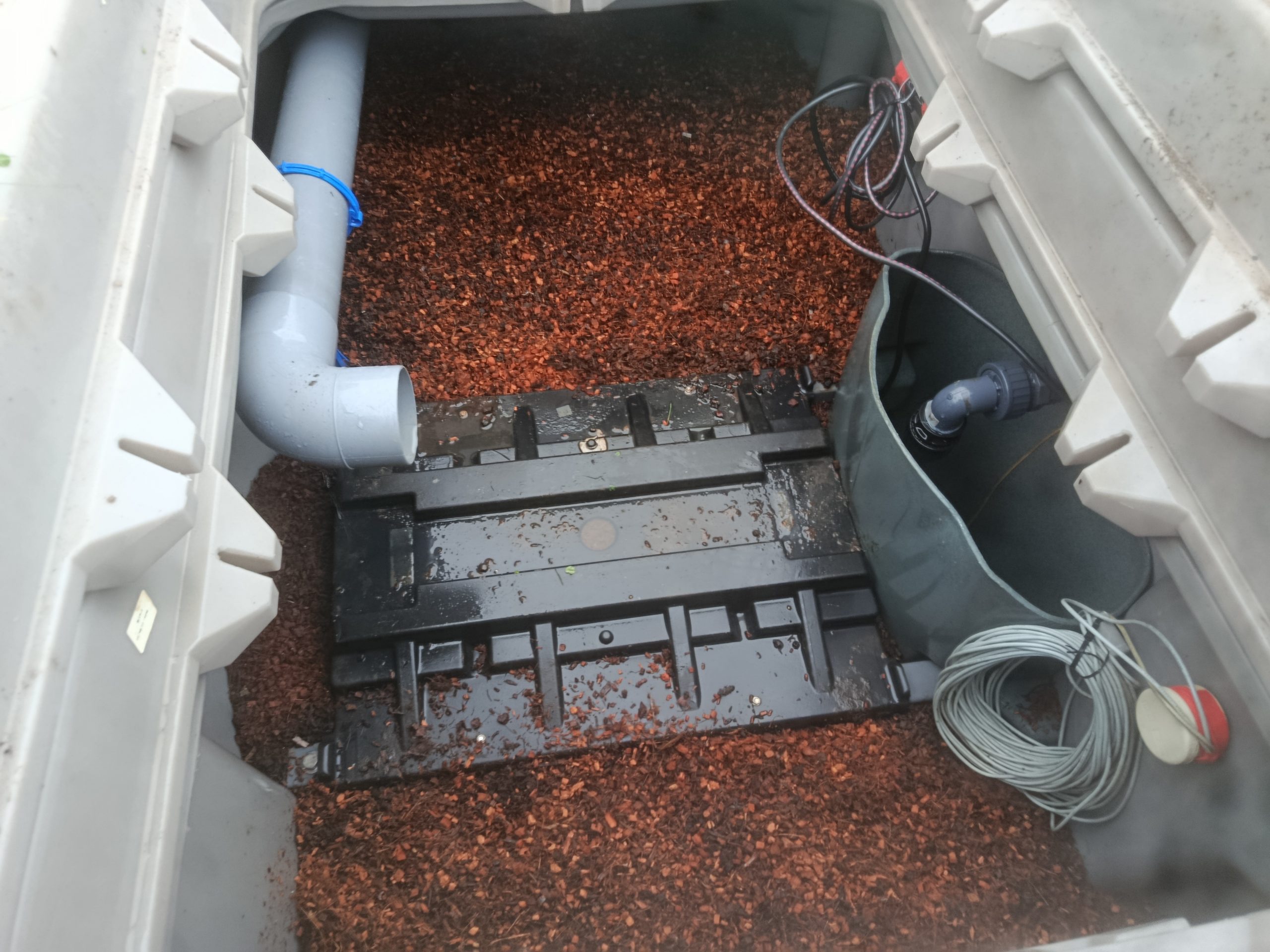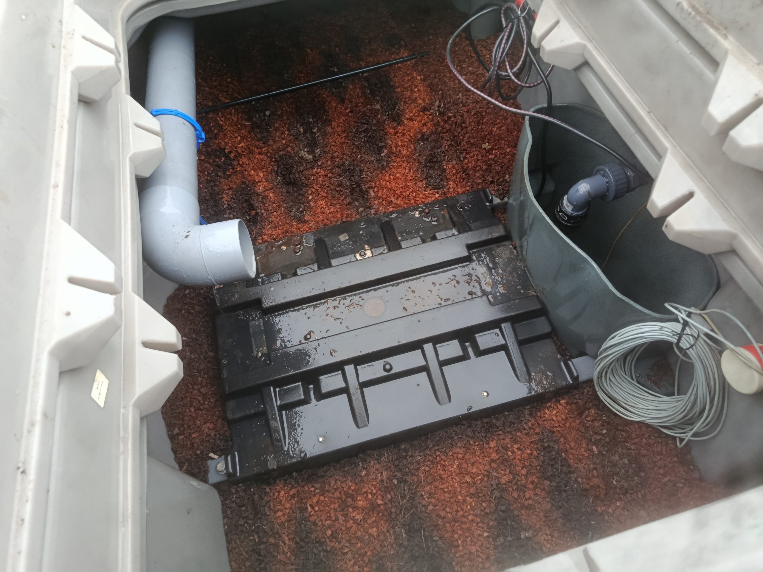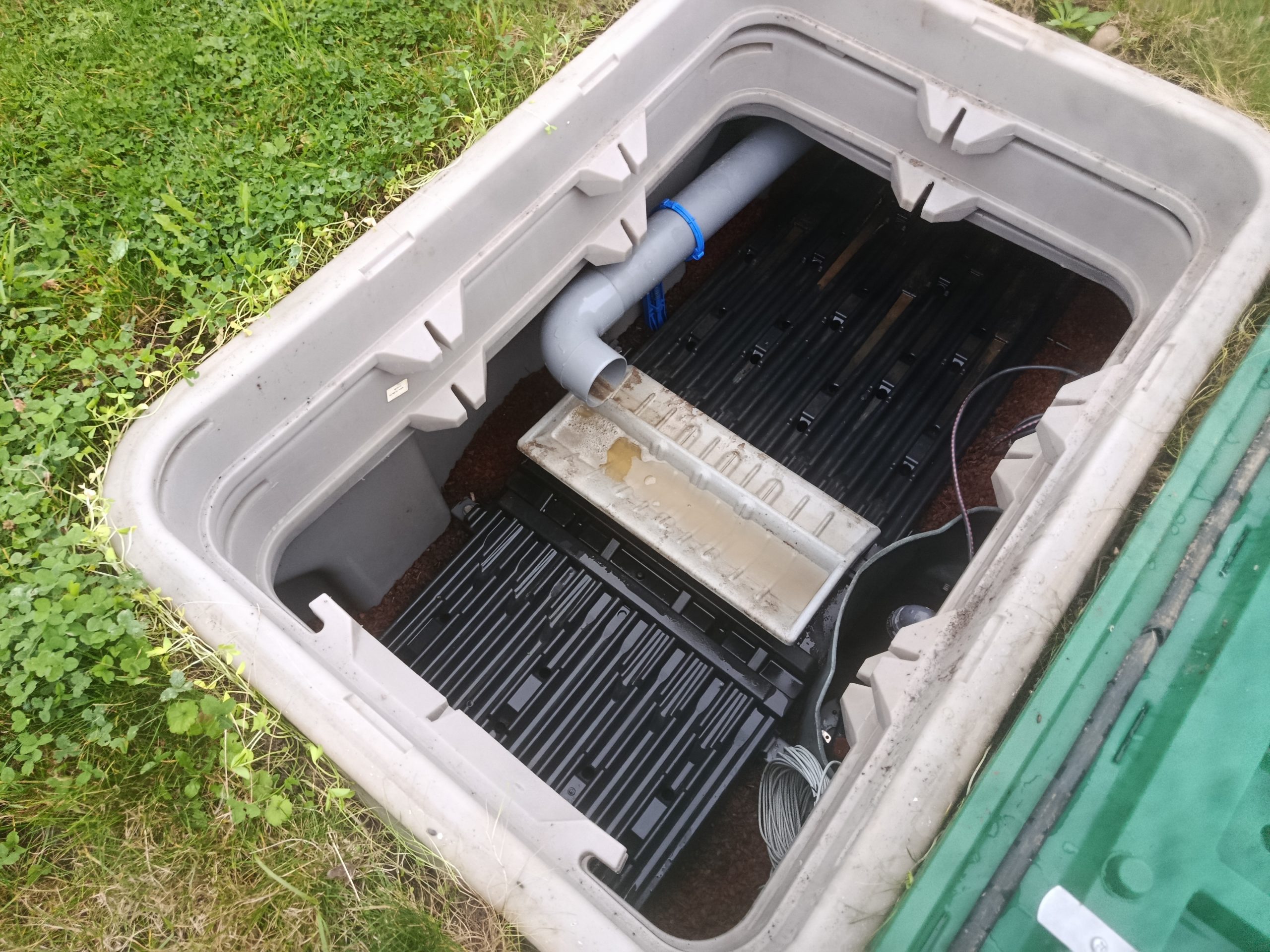 Nous intervenons aujourd’hui à Geffosses-Fontenay pour l’entretien d’un filtre compact Ecoflo 5 EH pack sortie haute, avec pompe de relevage intégrée.