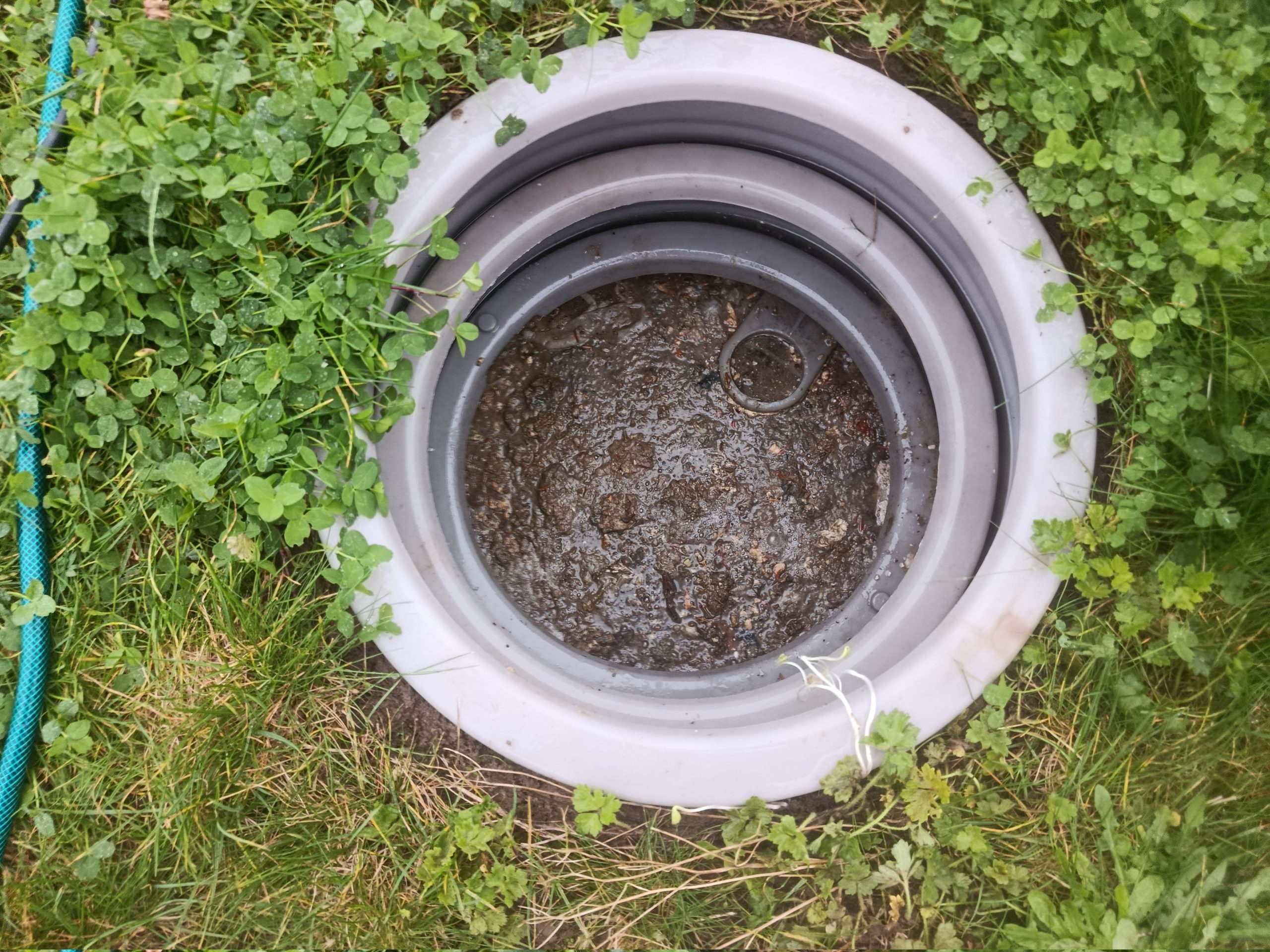 - Mesure de boue dans la fosse toutes eaux. Le niveau de boues accumulées est à 5%, aucune vidange n’est à prévoir dans l’immédiat.